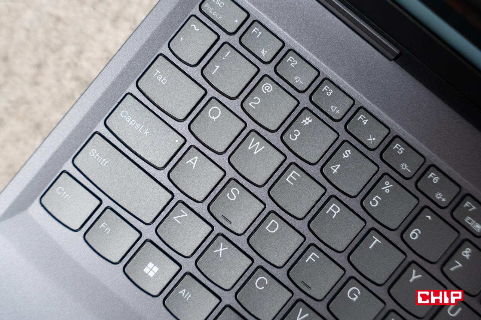 Zanim przejdziemy do ekranu, czeka nas słodko-gorzka opowieść o pulpicie roboczym. Słodka, bo klawiatura – jak to u Lenovo – jest naprawdę znakomita, z wyraźnym, 1,5-mm skokiem i dobrym dampingiem. Standardowo klawiatura jest podświetlana na biało, ale w niektórych egzemplarzach występuje 4-strefowe podświetlenie RGB. Nie mogę na klawiaturę powiedzieć złego słowa, pisało się na niej bardzo przyjemnie.