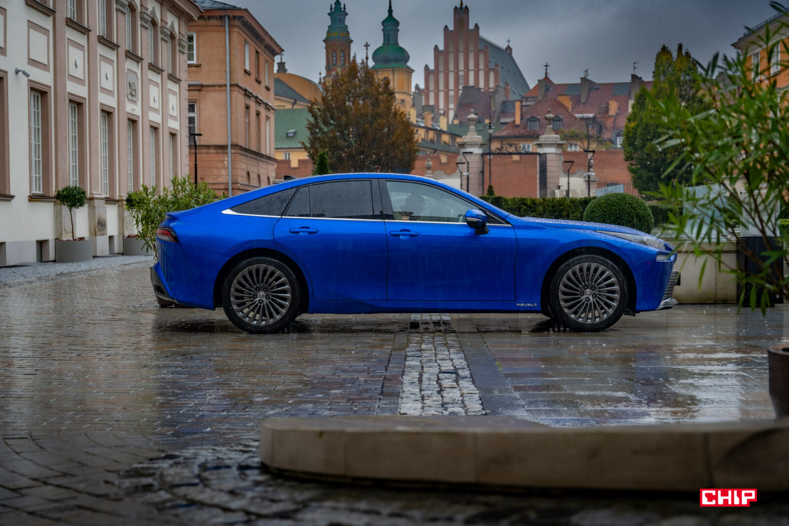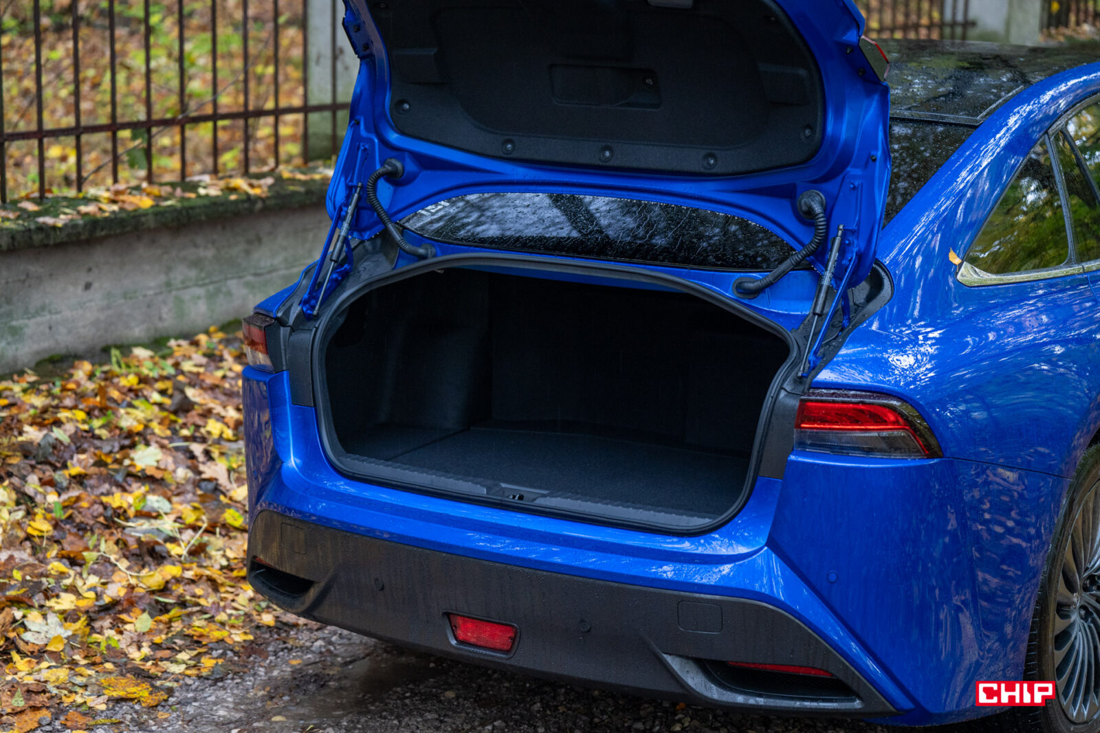Z zewnątrz Mirai robi o wiele lepsze wrażenie na żywo. Dostrzegliśmy tu sporo nawiązać do kultowej Supry, szczególnie jeśli spojrzycie na kształt tyłu auta oraz świateł. Dodając do tego sporo przetłoczeń na bokach i świetny lakier w żywym, niebieskim kolorze, to naprawdę robi wrażenie. A nie zapominajmy o efektownych 20-calowych felgach.