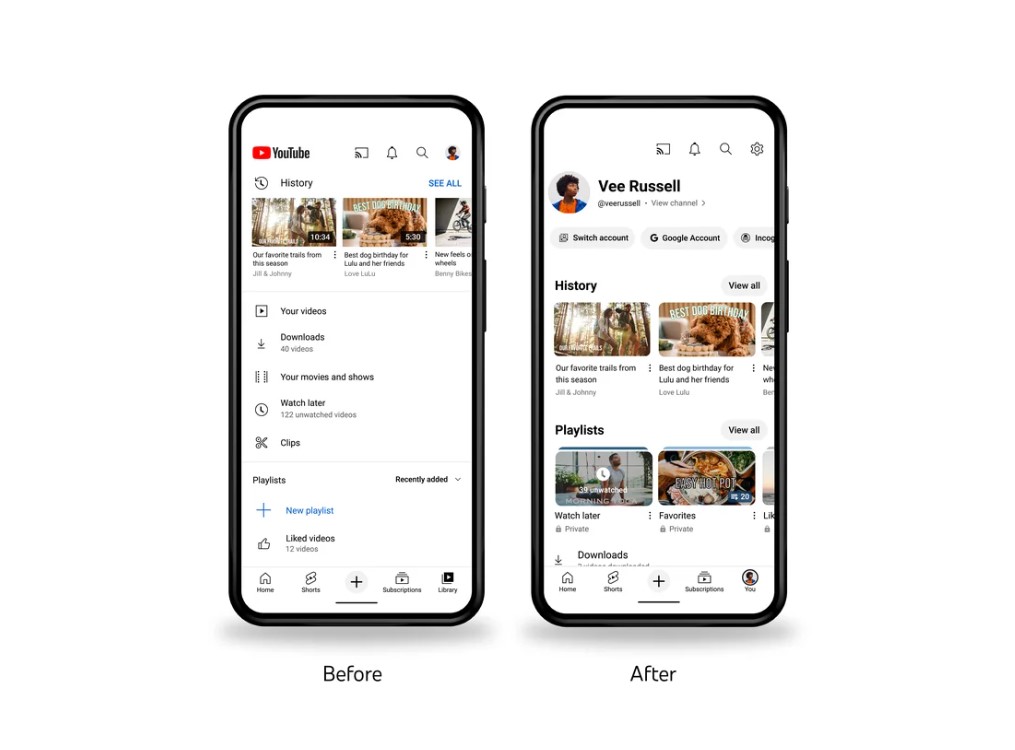 Zgodnie z zapowiedziami pojawiła się również nowa zakładka o nazwie „Ty”. W ten sposób Google chce nam ułatwić znalezienie wszystkich treści, poprzez połączenie karty Biblioteki i strony naszego konta w jedno. To tam będą dostępne wcześniej obejrzane filmy, playlisty, pobrane pliki, zakupy, ustawienia związane z kontem i informacje o kanale.