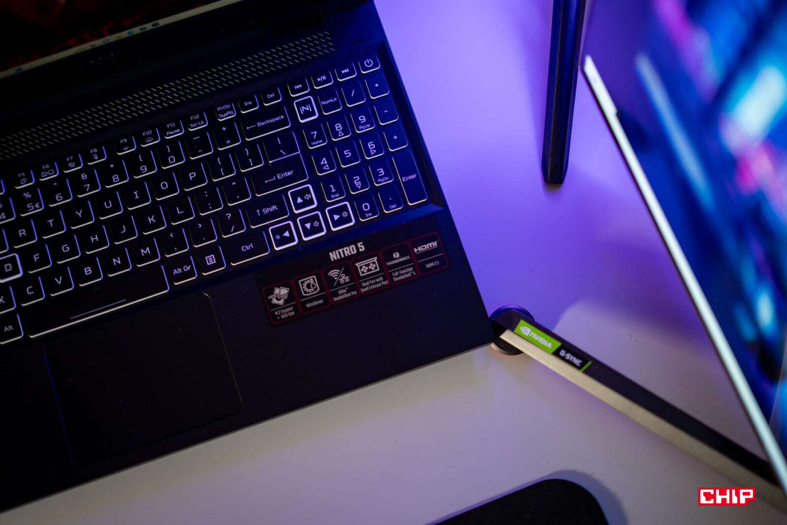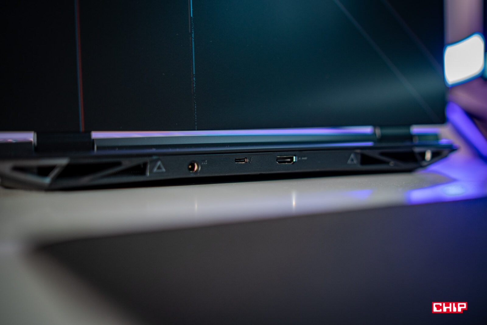 Zacznijmy jednak od tego, co na zewnątrz, a więc rozmiarów. Wynoszą one 360,4 x 271,09 x 26,9 mm, a więc są po prostu standardowe. W obudowie znajdują się dwa wloty oraz cztery otwory wylotowe powietrza, zapewniając jego optymalną cyrkulację, a co za tym idzie – utrzymywanie podzespołów w odpowiedniej temperaturze. To z kolei pozwala na zachowanie ich pełnej wydajności. Pod obudową pracują dwa wentylatory, których szybkość pracy można ustawić dzięki zainstalowanej aplikacji NitroSense.