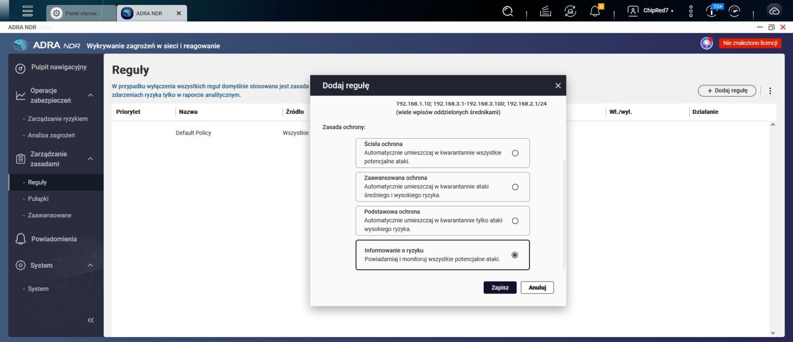 Oczywiście każdą z pułapek można skonfigurować, ustalić reguły (dostępne są cztery) itp. Mamy tu sporo możliwości, których wymienienie zajęłoby mnóstwo miejsca, więc napiszę to krócej – ADRA daje szerokie pole do popisu pod względem zastawiania pułapek oraz tworzenia zaawansowanych reguł ochrony urządzeń w sieci. Ponadto można skonfigurować powiadomienia, które natychmiast poinformują o próbie ataku lub złapaniu w pułapkę napastnika. Dzięki temu administrator ma na bieżąco podgląd aktualnej sytuacji i może w razie potrzeby natychmiast interweniować.