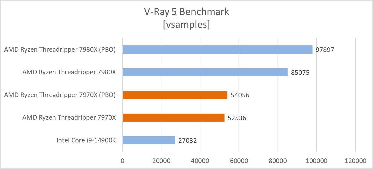 V-Ray został stworzony przez Vladimira Koylazov i Petera Mitev z Chaos Group w 1997 roku. Można z niego skorzystać w całym mnóstwie programów takich jak 3ds Max, SketchUp, Maya, Cinema 4D, Unreal, Blender itp.. Twórcy V-Ray udostępnili darmowy benchmark, który to właśnie wykorzystałem w poniższych testach.