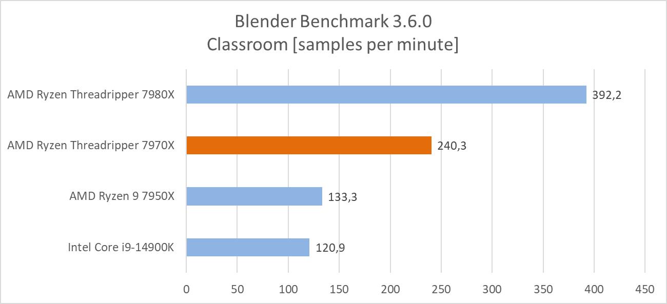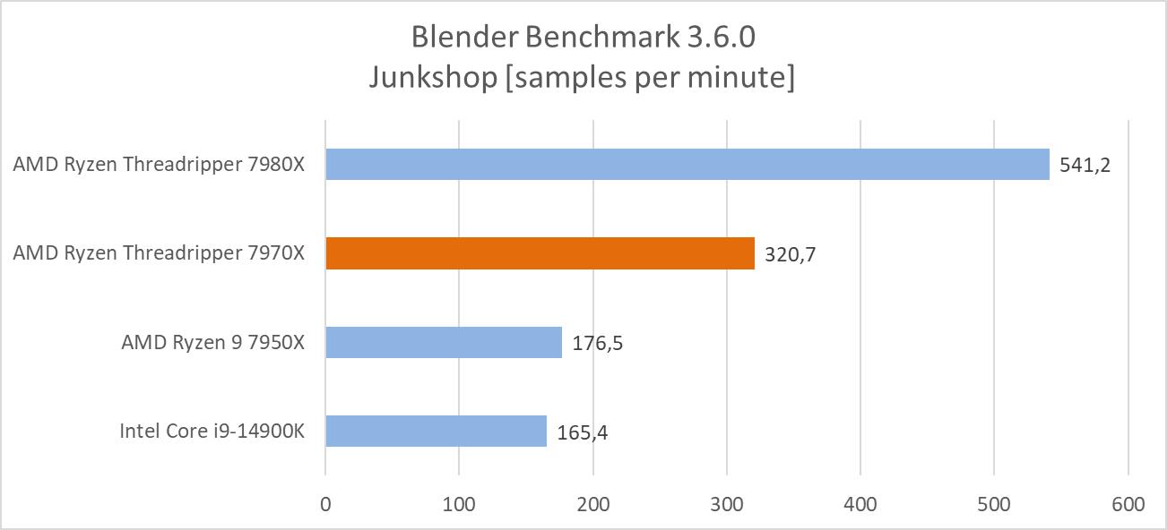 Ten program każdy z Was powinien kojarzyć. Służy on do modelowania i renderowania obrazów czy animacji trójwymiarowych. Wykorzystałem benchmark udostępniony przez twórców, który sprawdza wydajność w 3 scenach: Monster, Junkshop oraz Classroom.