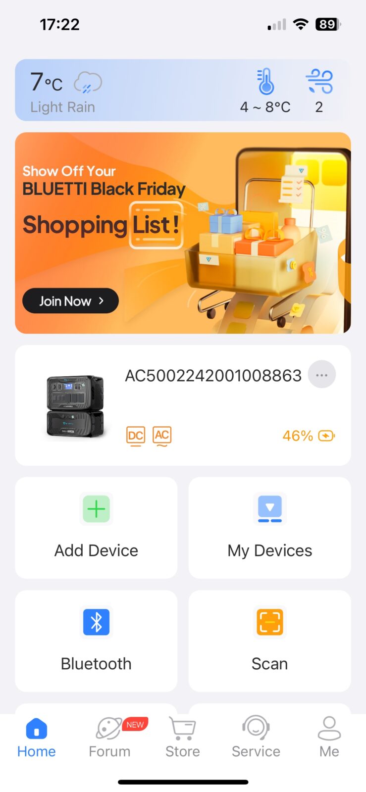 Można, a nawet warto przebijać się przez kolejne zakładki, ale z pewnością wygodniej będzie robić to z kanapy z telefonem w ręku i tu na pokład wchodzi mobilna aplikacja Bluetti (iOS lub Android). Jak przystało na urządzenie zaprojektowane z uwzględnieniem wszechobecnej dziś łączności bezprzewodowej, Bluetti AC500 i B300S da się podpiąć do domowej sieci Wi-Fi (niestety u mnie udało się to wyłącznie na zakresie 2,4 GHz), a także kontrolować zdalnie wszelkie parametry za pośrednictwem wspomnianej aplikacji przez Bluetooth.