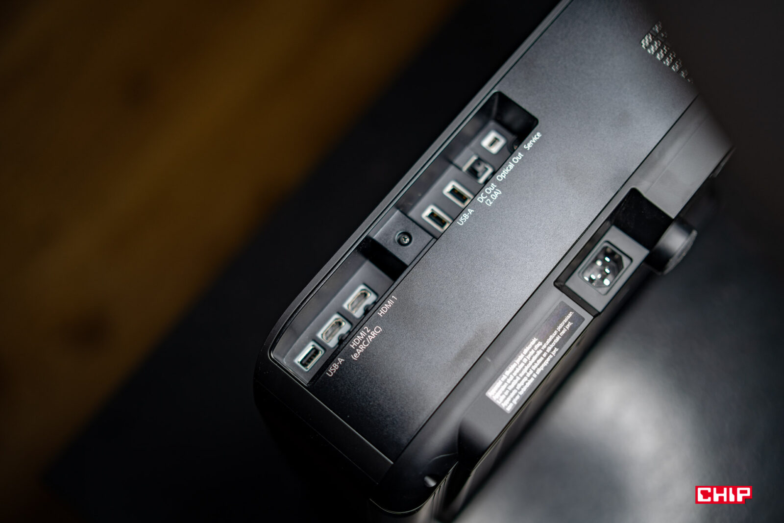 Jeszcze szybki rzut okiem na znajdujący się z tyłu panel złącz, gdzie widać możliwość podpięcia źródeł sygnału do dwóch portów HDMI (jedno z nich obsługuje standard eARC). Komplet gniazd uzupełniają trzy złącza USB 2.0 typu A (jedno z nich może służyć do ładowania), wyjście optyczne i złącze serwisowe. Czy czegoś może nam tu brakować? Może jedynie złącza dla kabla sieciowego RJ-45, czyli możliwości podpięcia do Internetu po kablu.