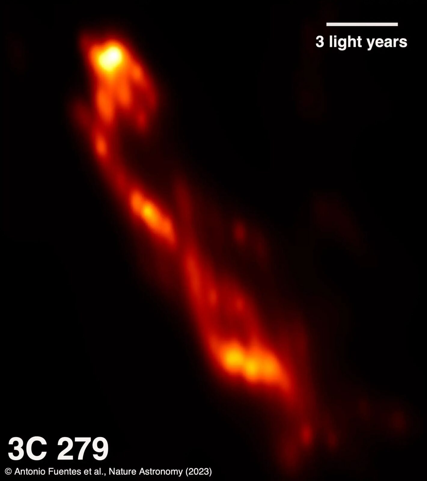 Analiza uzyskanych obrazów wykazała istnienie spiralnych włókien, co może mieć istotny wpływ na funkcjonujące modele teoretyczne stosowane do wyjaśniania, jak powstają dżety w galaktykach aktywnych. Dżet wyemitowany z 3C 279 ma co najmniej dwa skręcone włókna plazmy, a ich łączna długość od źródła wynosi ponad 570 lat świetlnych.