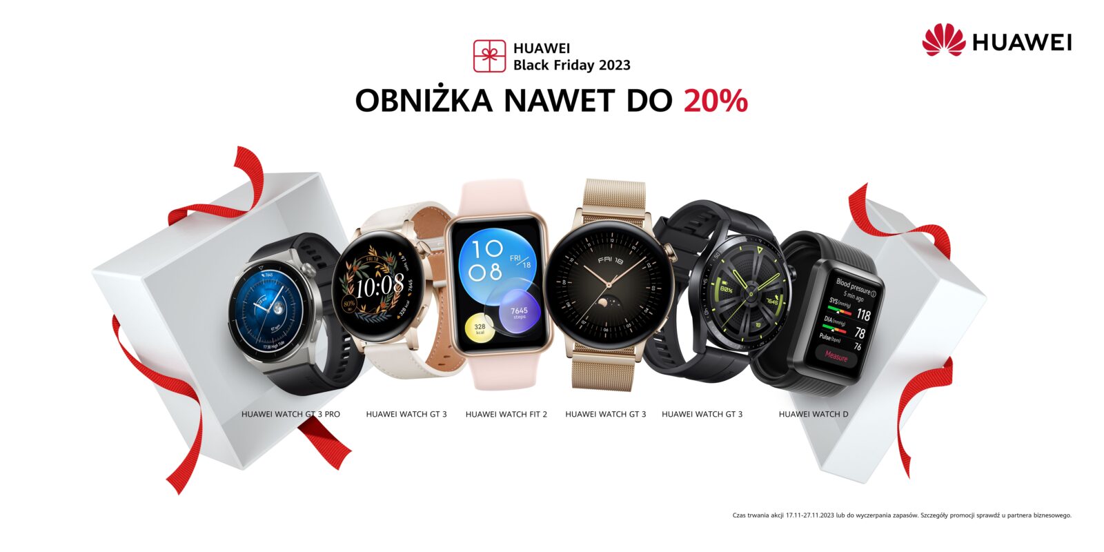 Święta Bożego Narodzenia zbliżają się wielkimi krokami, a wraz z nimi sporo wydatków, z jakimi wiąże się kupowanie prezentów. Warto więc skorzystać z ofert, jakie pojawiają się z okazji Black Friday. Bardzo opłaca się elektronika, którą upolować można w dużo niższych cenach. Huawei dał nam ogromny wybór w tym roku, przeceniając nie tylko popularne smartwatche, ale również smartfony i słuchawki. Urządzenia dostępne będą dostępne u wybranych partnerów biznesowych – w sieciach handlowych Media Expert, RTV Euro AGD, Media Markt, x‑kom i Komputronik. Nie ma też co długo zwlekać z zakupem, bo promocja obowiązuje do wyczerpania zapasów i potrwa tylko do 27 listopada.