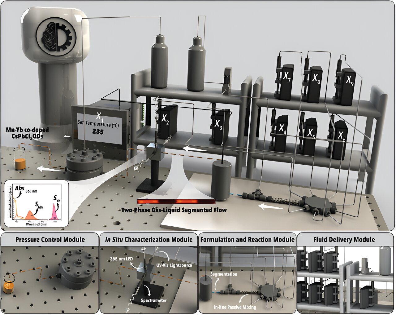 W oparciu o zwyczajowo stosowane techniki, naukowcy potrzebowaliby około dziesięciu lat, aby powtórzyć wyczyn, który autonomicznemu laboratorium zajął zaledwie kilka godzin. Jak w ogóle działa SmartDope? Początkowo maszyna otrzymuje informacje dotyczące tego, na jakich prekursorach chemicznych ma działać. Wyznaczony zostaje także cel, do którego ma dążyć. W przypadku ostatnich eksperymentów laboratorium miało za zadanie zaprojektować domieszkowaną perowskitową kropkę kwantową, które będzie cechowała się maksymalnie wysokim stosunkiem fotonów emitowanych przez kropkę kwantową (w podczerwieni lub widzialnych długościach fal światła) do fotonów pochłanianych przez nią (w świetle UV).