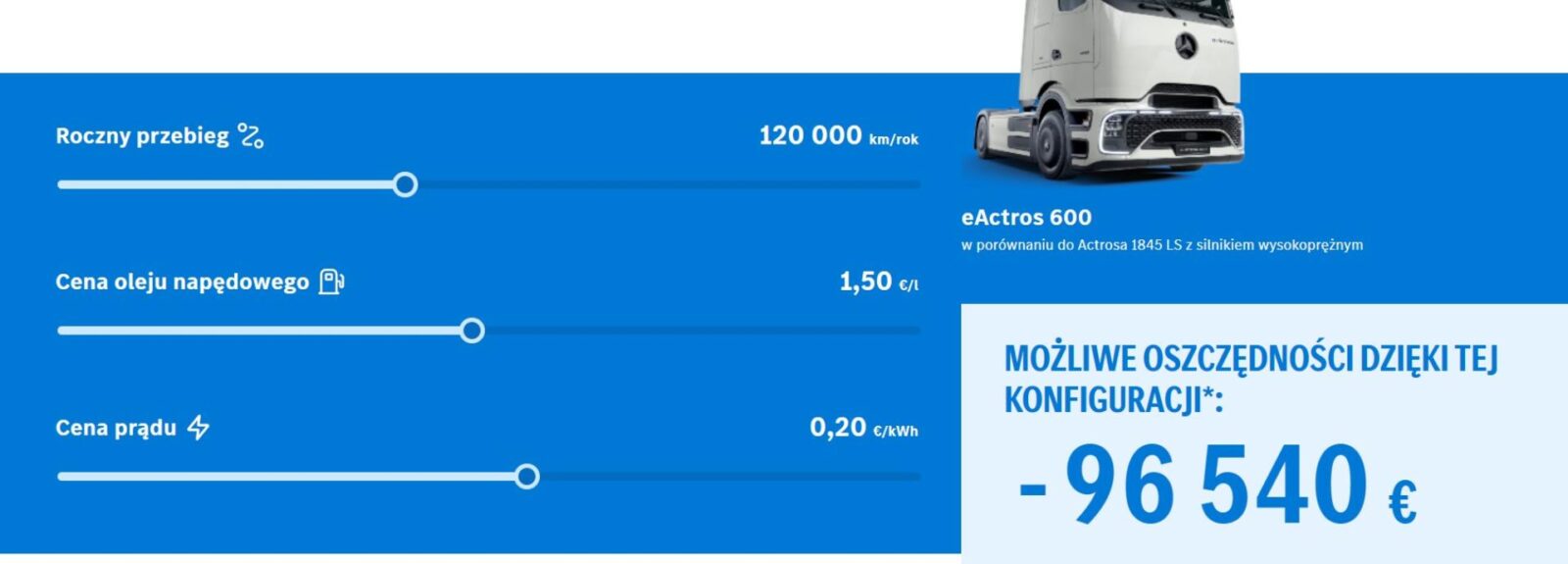 Najważniejszym elementem konstrukcji eActros 600 jest jego niezwykły system 621-kWh akumulatorów, który obejmuje aż trzy pakiety ogniw na bazie technologii litowo-żelazowo-fosforanowej. Dzięki niemu jedno tylko ładowanie tej ciężarówki ma umożliwić jej przejechanie do 500 kilometrów, a że maksymalna moc ładowania ma wynosić z początku 400 kW, a później urosnąć do nawet 1 megawata (w bardziej zaawansowanych wersjach), nie powinno to budzić problemów bezpośrednio z samym czasem oczekiwania. Zwłaszcza że tego typu 400- i nawet 1000-kW stacje będą zapewne zarezerwowane wyłącznie dla danej floty ciężarówek.