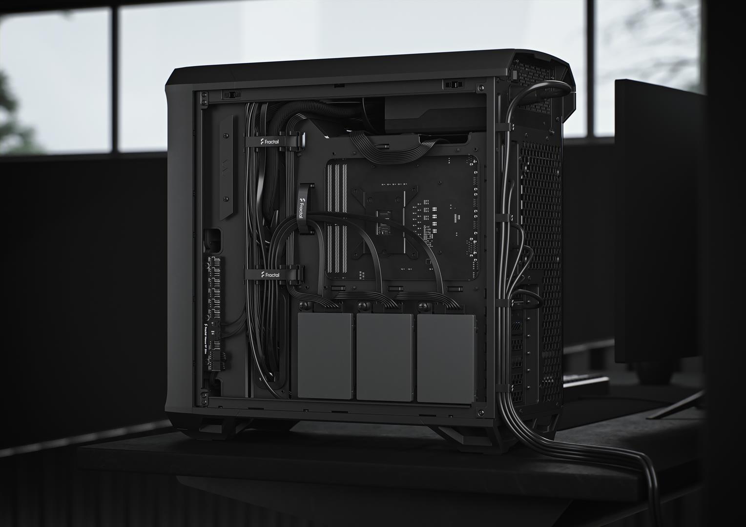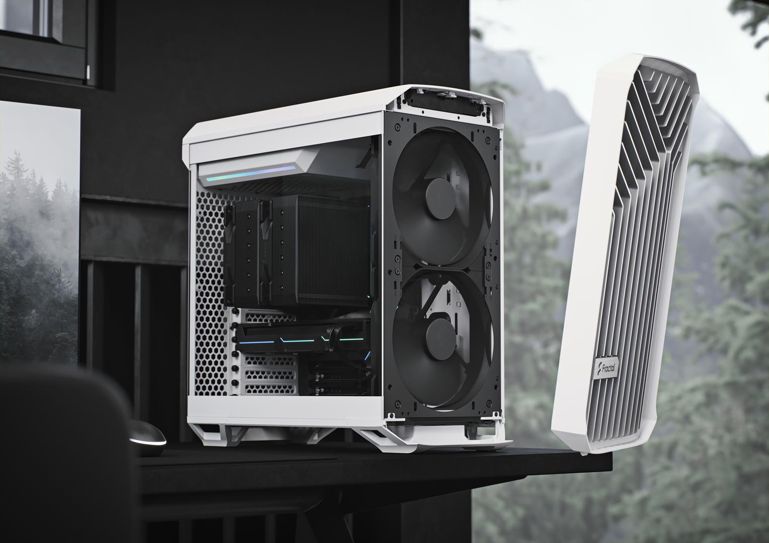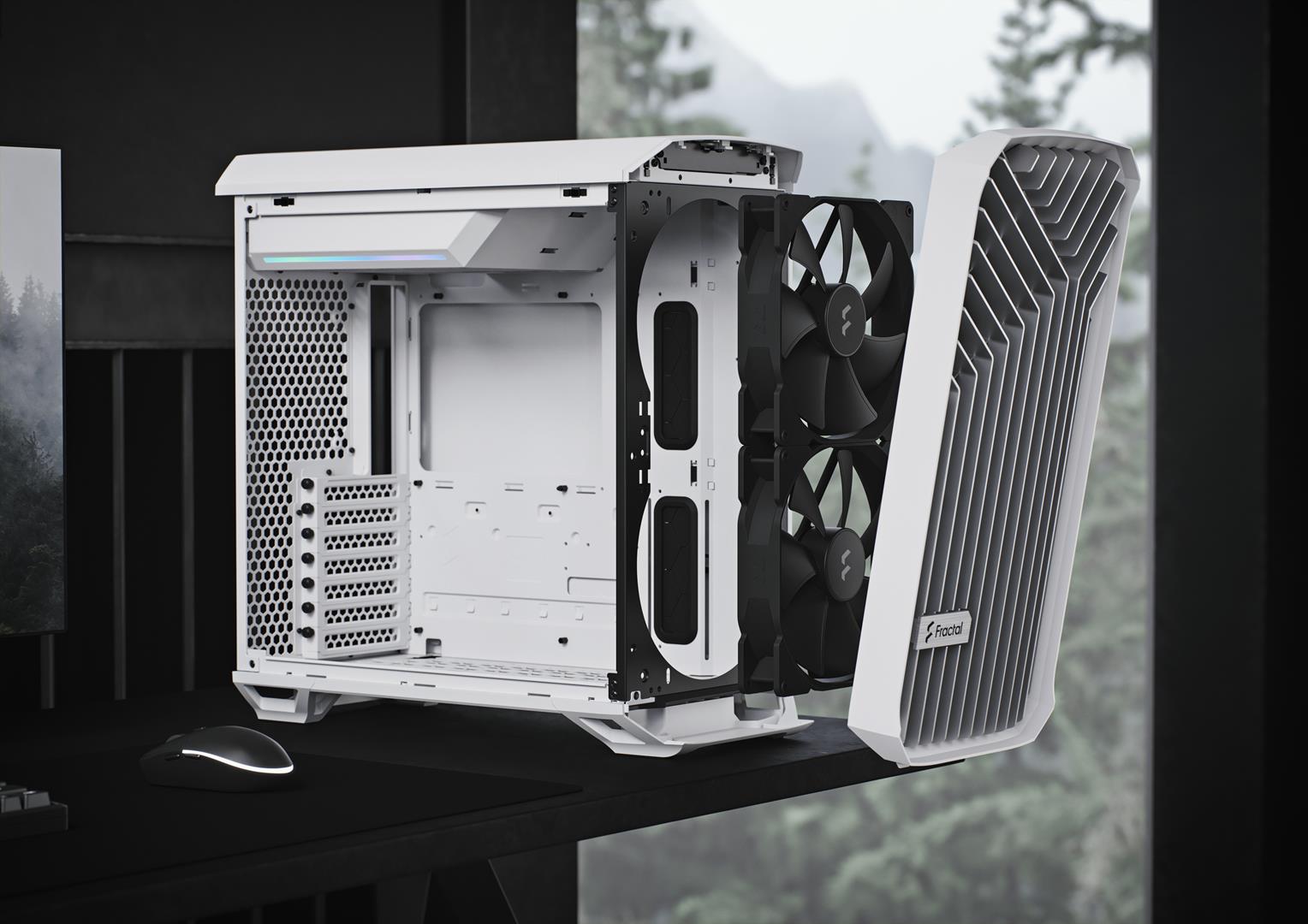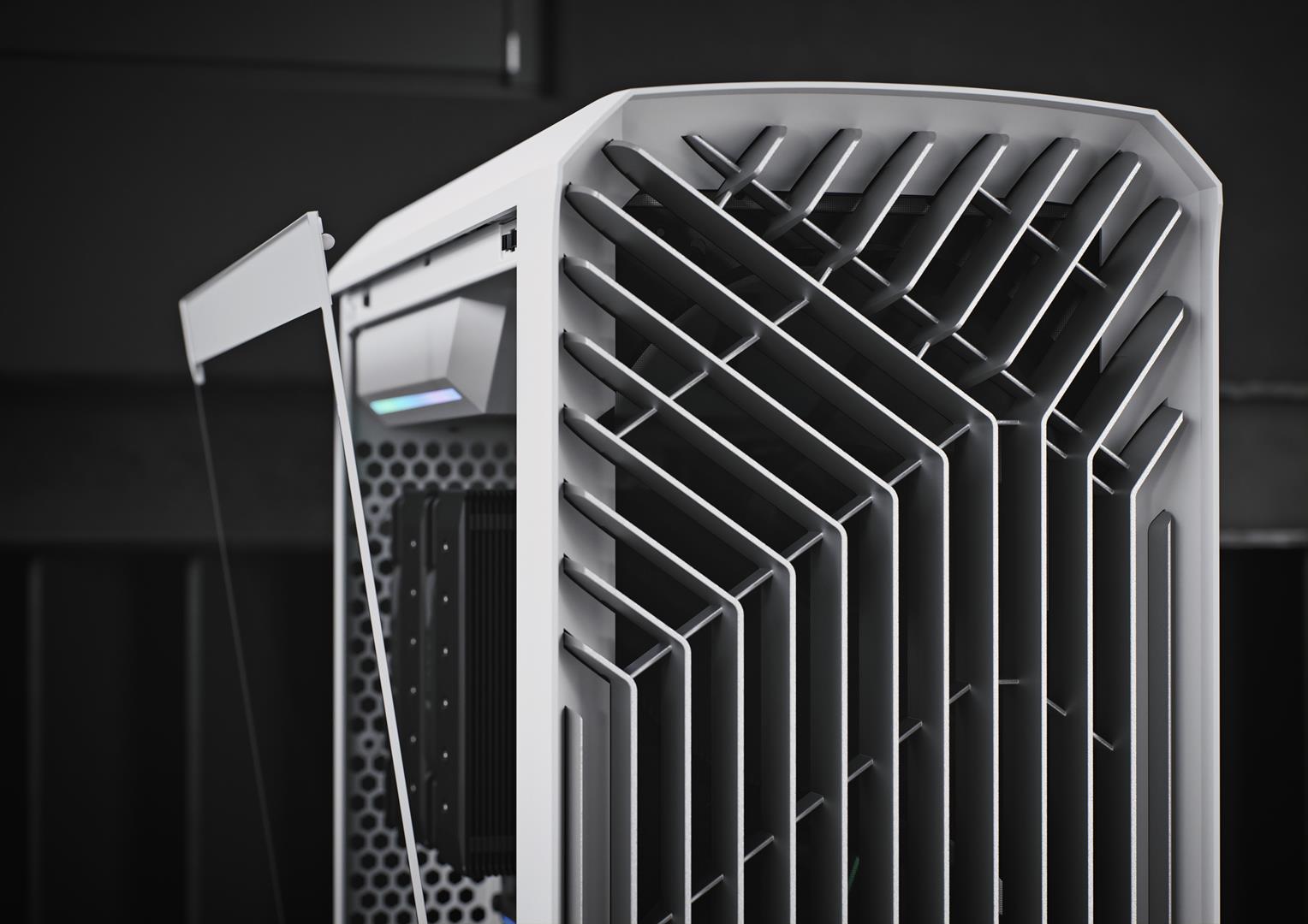 Nie wszyscy mają miejsce na wielkie skrzynie i nie wszyscy chcą tak wielkie obudowy regularnie przenosić, jeśli akurat często są do tego zmuszeni. Dla takich klientów Fractal przygotował wyjątkową obudowę o nazwie Terra, która w dniu premiery miała zrewolucjonizować SFF, czyli kompaktową formę komputerów dla graczy. Składają się na nią grube panele wycięte z anodowanego aluminium, których wykończeniem zajęła się maszyna CNC, ale tym najbardziej znaczącym zwieńczeniem projektu jest część przedniego panelu wykonanego z certyfikowanego drewna orzechowego.