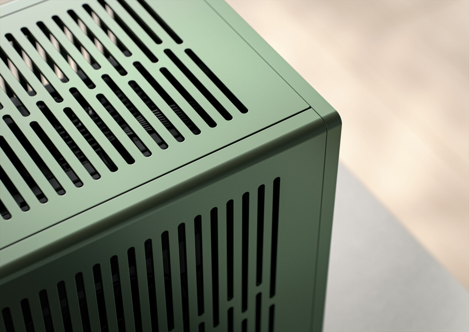 Pomimo swojej solidnej konstrukcji, Terra zachowuje kompaktowy rozmiar, bo pomijając nóżki, zajmuje tyle, co nic, bo 343 x 153 x 198 mm i sama w sobie waży niewiele (3,1 kilograma). Obudowa jest dostępna w trzech różnych wariantach kolorystycznych (Grafit, Srebro i Jadeit), a jej projekt podkreśla naturalny przepływ powietrza z racji wentylowanego panelu górnego, dolnego oraz obu paneli bocznych. Sercem projektu Terra jest jej innowacyjna, bezstopniowa ślizgowa ścianka centralna, która zapewnia niezrównaną elastyczność w alokacji wewnętrznej przestrzeni, umożliwiając dostosowanie układu do konkretnych wymagań sprzętowych.