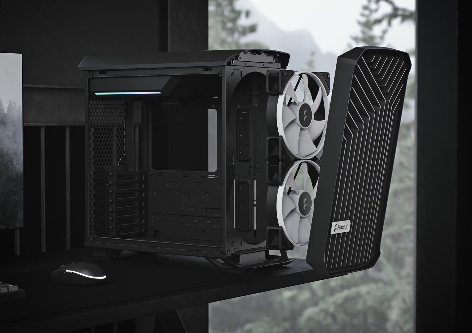 Niech nie zawiedzie was nazwa, bo Torrent Compact wcale nie jest byle skromną obudową. Ba, mierzy całe 450 x 222 x 467 mm i waży nawet 8 kg w najcięższej wersji, a to przekłada się nie tylko na wielkie możliwości w zakresie “wielkościowej kompatybilności”, ale też znaczne ułatwienie procesu składania i czyszczenia komputera z kurzu z racji m.in. 20-mm przestrzeni na ułożenie przewodów pod panelem serwisowym.