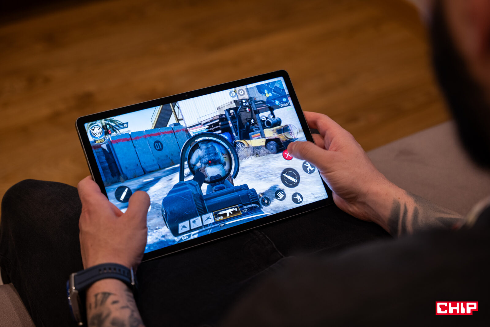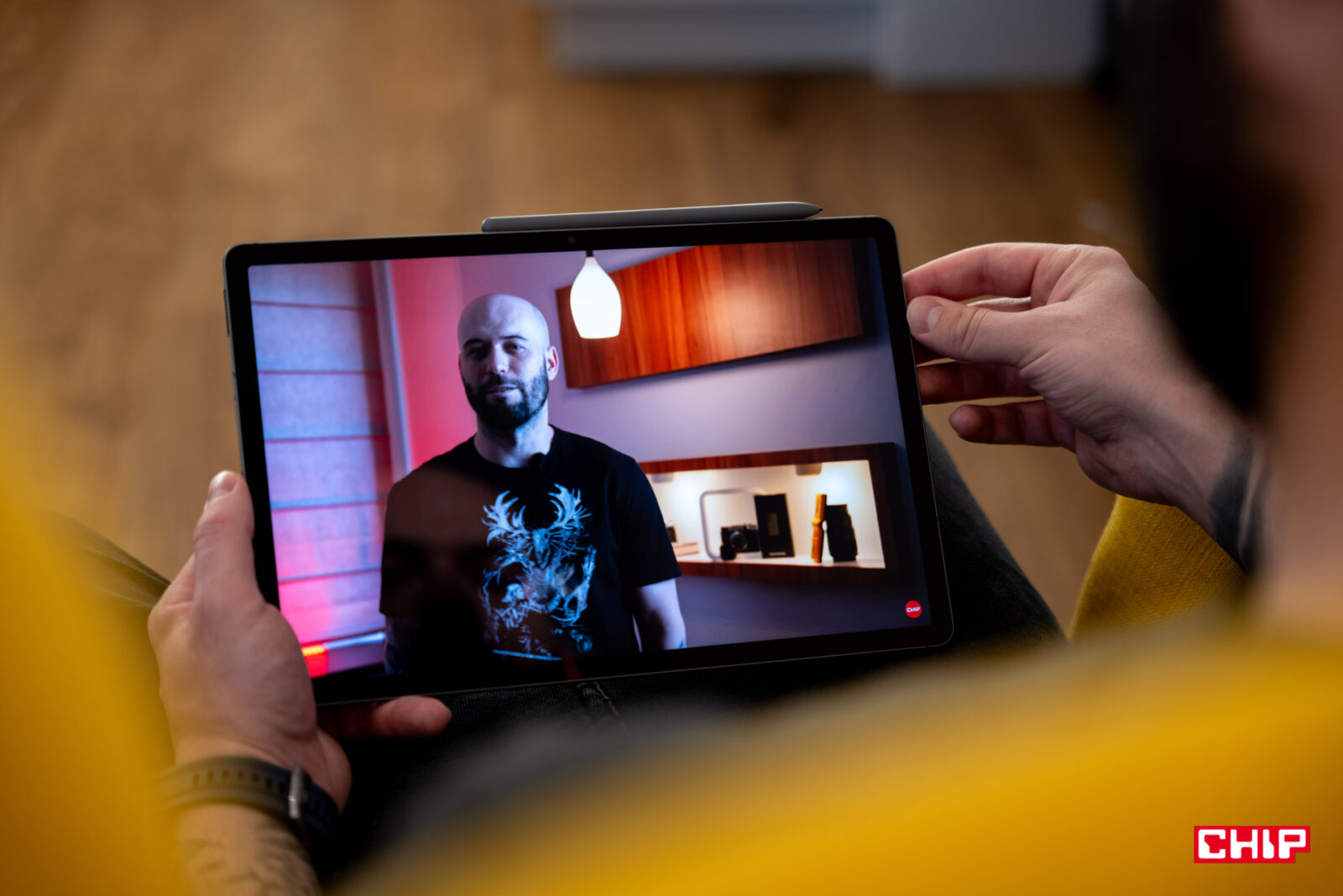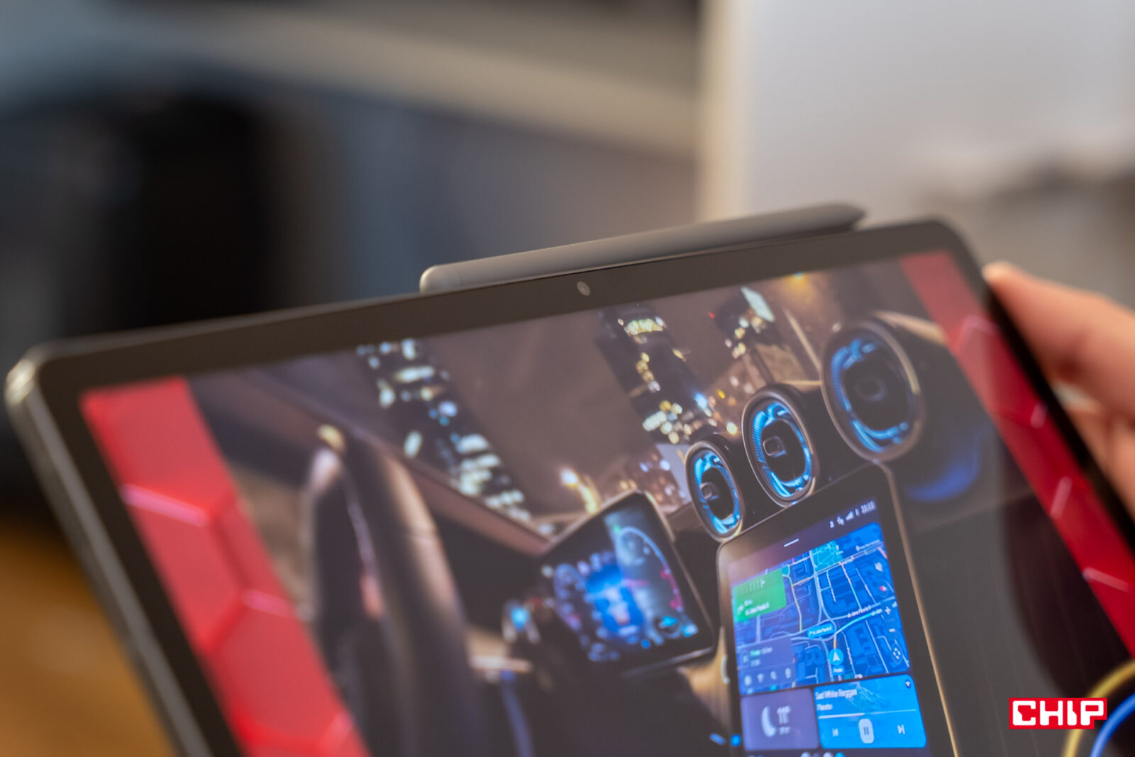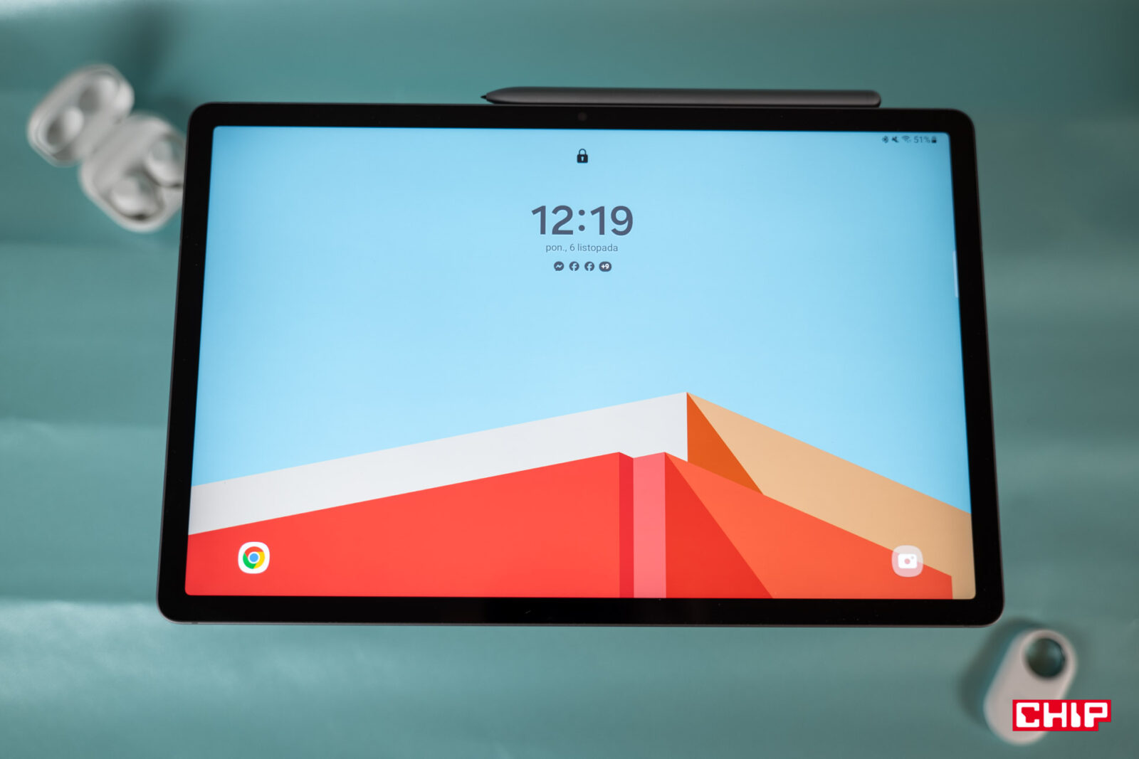 To oczywiście sytuacja wypadkowa, ale certyfikat IP68 sprawił, że nie miałem obawy o stan sprzętu. Bez problemu może on znajdować się w okolicy basenu czy towarzyszyć nam podczas deszczowych eskapad, chociażby w góry. Aby osiągnąć taki stan, obudowę trzeba było zbudować z poszanowaniem jakości. Zastosowane aluminium nie ugina się przy żadnej krawędzi, a matowy finisz czyni chwyt przyjemnym. Jak na swoje wymiary – w końcu to tablet z 12,4-calowym ekranem – całość nie jest dyskwalifikująco ciężka – 627 gramów odczujecie w dłoni, ale nie będziecie też trzymać urządzenia jak smartfonu przez większość czasu.