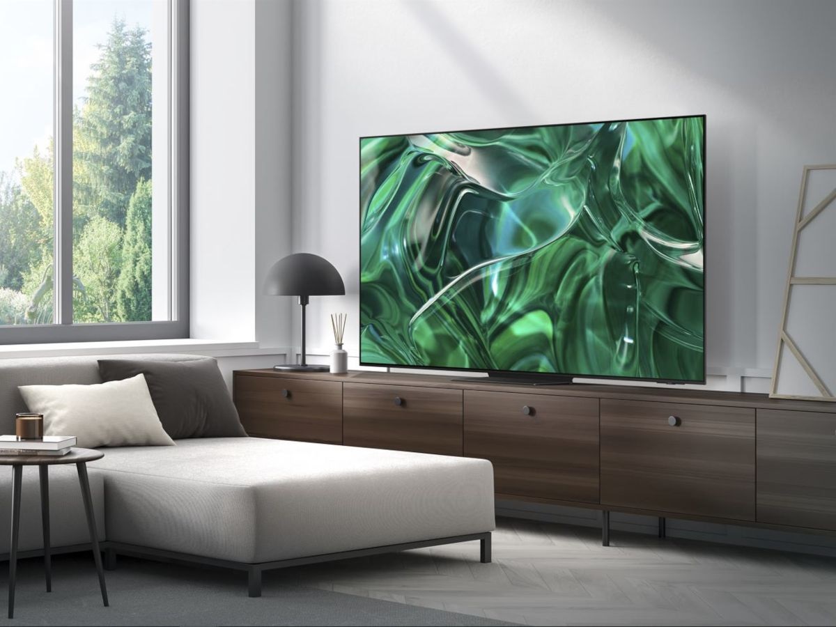 Świetną opcją dla fanów nie tylko sportu, ale też oglądania filmów i seriali w iście kinowy sposób jest jeden z flagowych modeli telewizorów Samsung – S95C. To druga generacja telewizorów QD-OLED, opartych o matrycę, która łączy organiczne diody z kropkami kwantowymi. W efekcie widz uzyskuje nieograniczony kontrast, wysoką jak na ten typ ekranu jasność oraz niezwykle wiernie odwzorowane kolory. Jeśli więc chcecie cieszyć się zawsze zieloną murawą, zachwycać się detalami na strojach piłkarzy i nie może wam umknąć żadna piła Igi Świątek to, S95C będzie doskonałym wyborem. Ten telewizor jest ciekawy także z punktu widzenia konstrukcyjnego. Złącza zostały wyprowadzone do zewnętrznego boxa, który może być ulokowany w podstawie, a jeśli ten niezwykle smukły telewizor zamocujemy na ścianie to wszystkie podłączenia mogą być ukryte w szafce RTV pod telewizorem, a do ekranu podłączony będzie tylko jeden przewód. Model ten występuje w wariantach 55,66 i 77 cali.