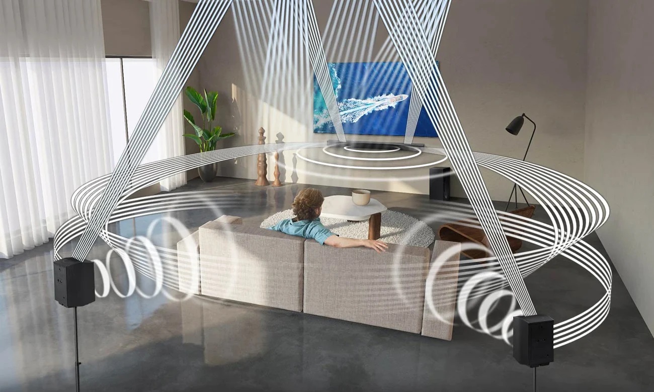 Istotne jest to, że przy budowaniu emocji w sporcie ważną rolę odgrywa nie tylko obraz, ale też dźwięk. Dlatego decydując się na odświeżenie swojego stanowiska kibica dobrze jest pomyśleć o zakupie nie tylko świetnego, dużego telewizora, ale też doposażyć go w porządny system audio, jakim jest soundbar. W przypadku transmisji sportowych ważne jest to, aby scena dźwiękowa była szeroka. Dobrym pomysłem będzie więc soundbar HW-Q800C. Natomiast najbardziej wymagający użytkownicy, chcący mieć kompaktowe kino domowe w swoich wnętrzach powinni sięgnąć po system zamknięty w soundbarze HW-Q990C. To nie tylko przednia belka grająca i subwoofer, ale też dwa tylne głośniki. Łącznie to rozwiązanie pozwalające cieszyć się dźwiękiem w standardzie 11.1.4 (odpowiednik aż 16 niezależnych głośników w kinie domowym ukryty raptem w czterech). W przypadku soundbarów i telewizorów Samsung świetnym pomysłem jest ich połączenie. Dzięki synergii sprzętów w ramach funkcji Q-Symphony głośniki telewizora również są wykorzystywane, by osiągnąć lepsze efekty dźwiękowe i nie marnować faktu ich istnienia w telewizorze. Ponadto istnieje możliwość bezprzewodowego połączenia soundbara z telewizorem bez uszczerbku na dźwięku także w technologii Dolby Atmos.