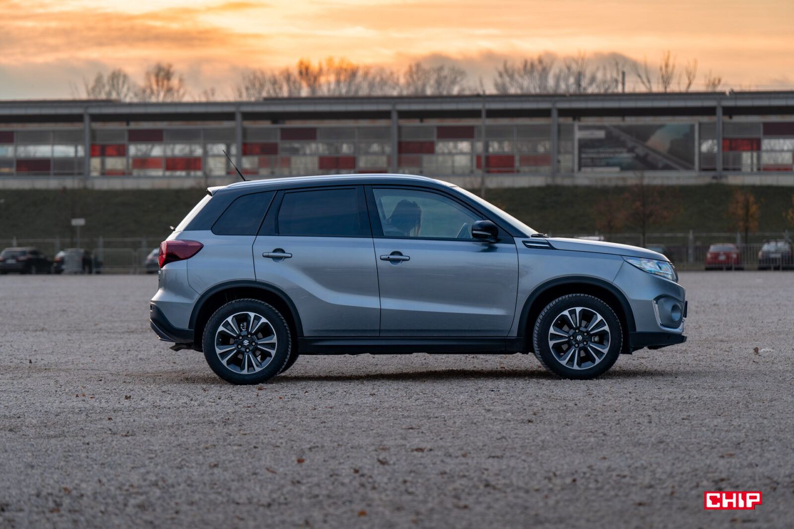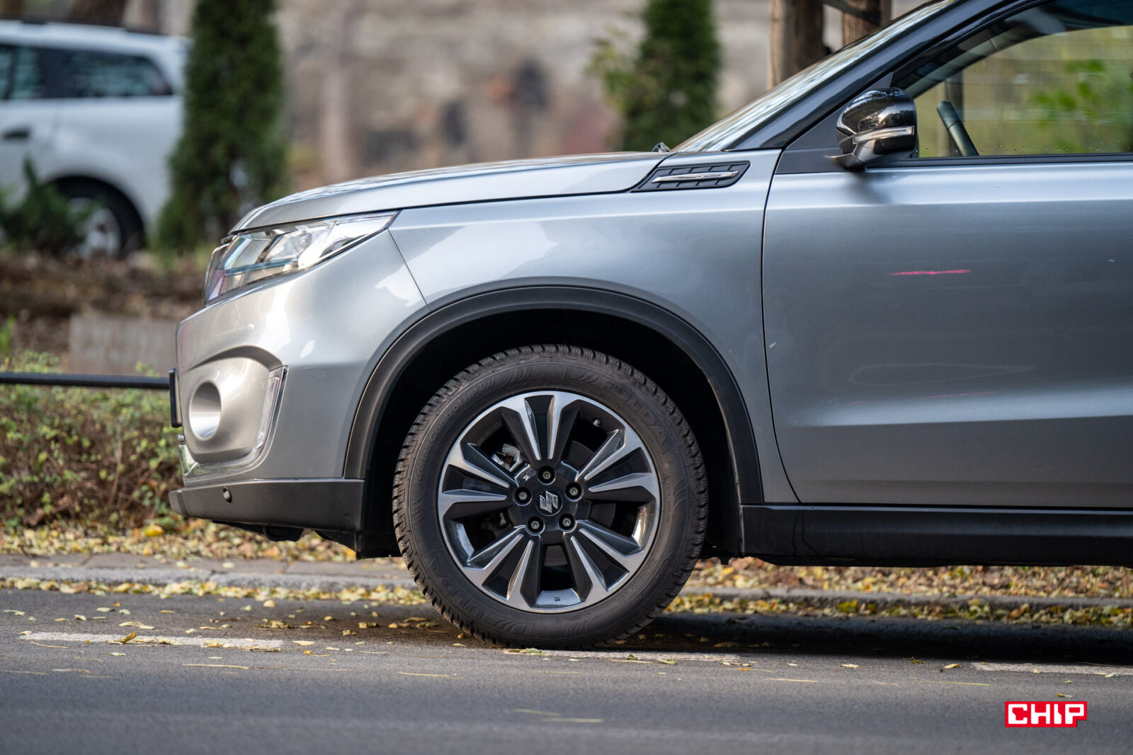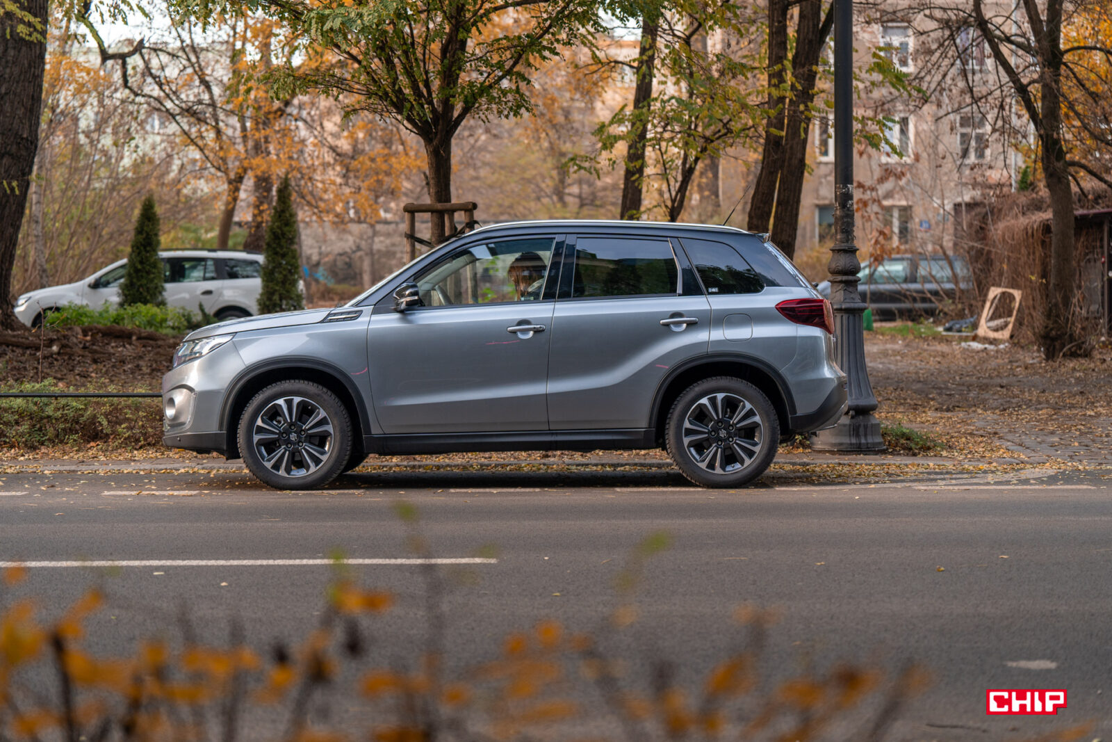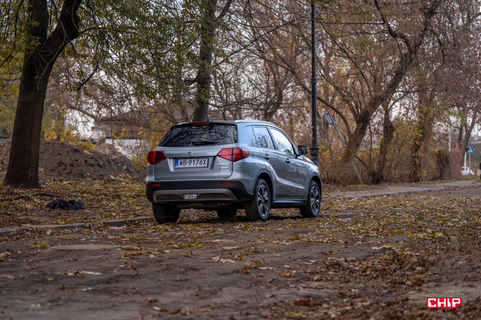 Suzuki Vitara nieco inaczej wygląda w rzeczywistości niż na zdjęciach prasowych. Na nich wydaje się autem długim, masywnym i trochę ociężałym. W rzeczywistości to, jak na dzisiejsze standardy, kompaktowy crossover mający 4175 mm długości, 1775 mm szerokości (bez lusterek) i 1610 mm wysokości, a jego masa własna z pełnym wyposażeniem to skromne 1267 kg. Na tle dzisiejszych SUV-ów to wręcz kruszynka.