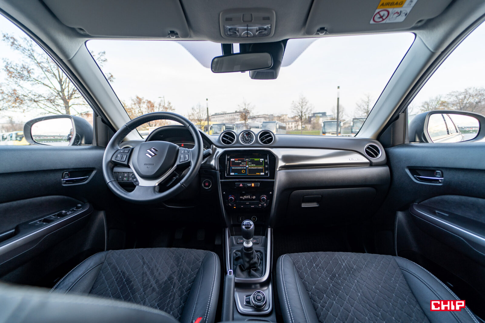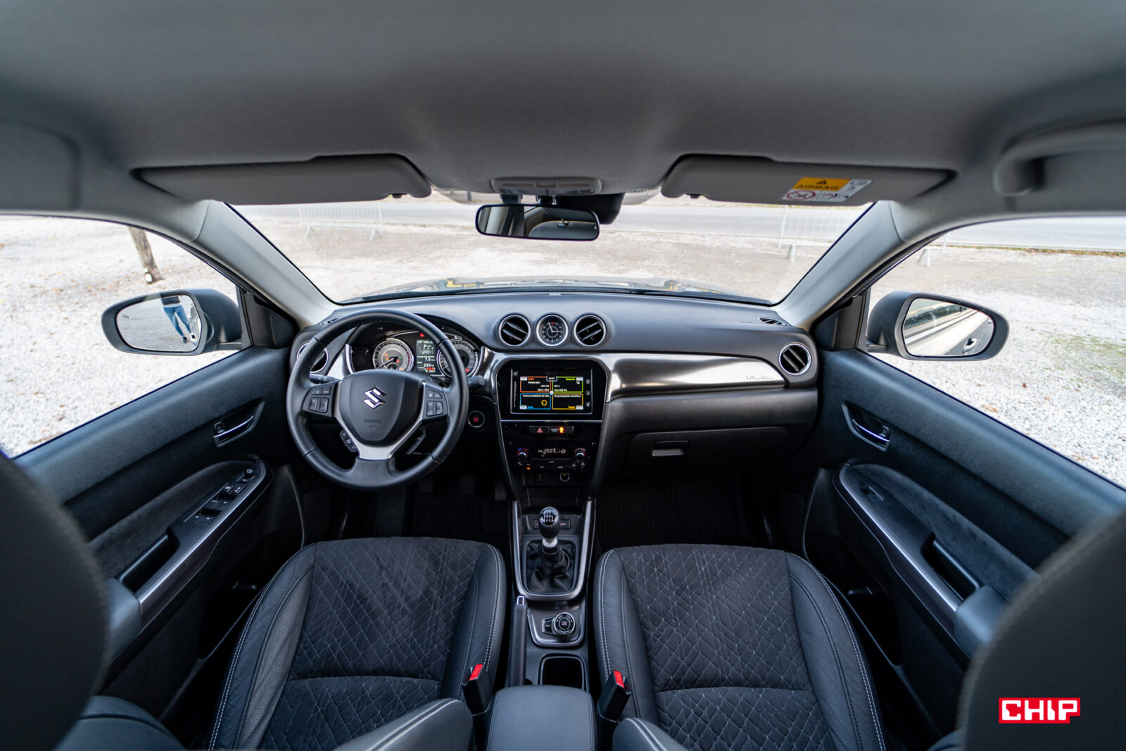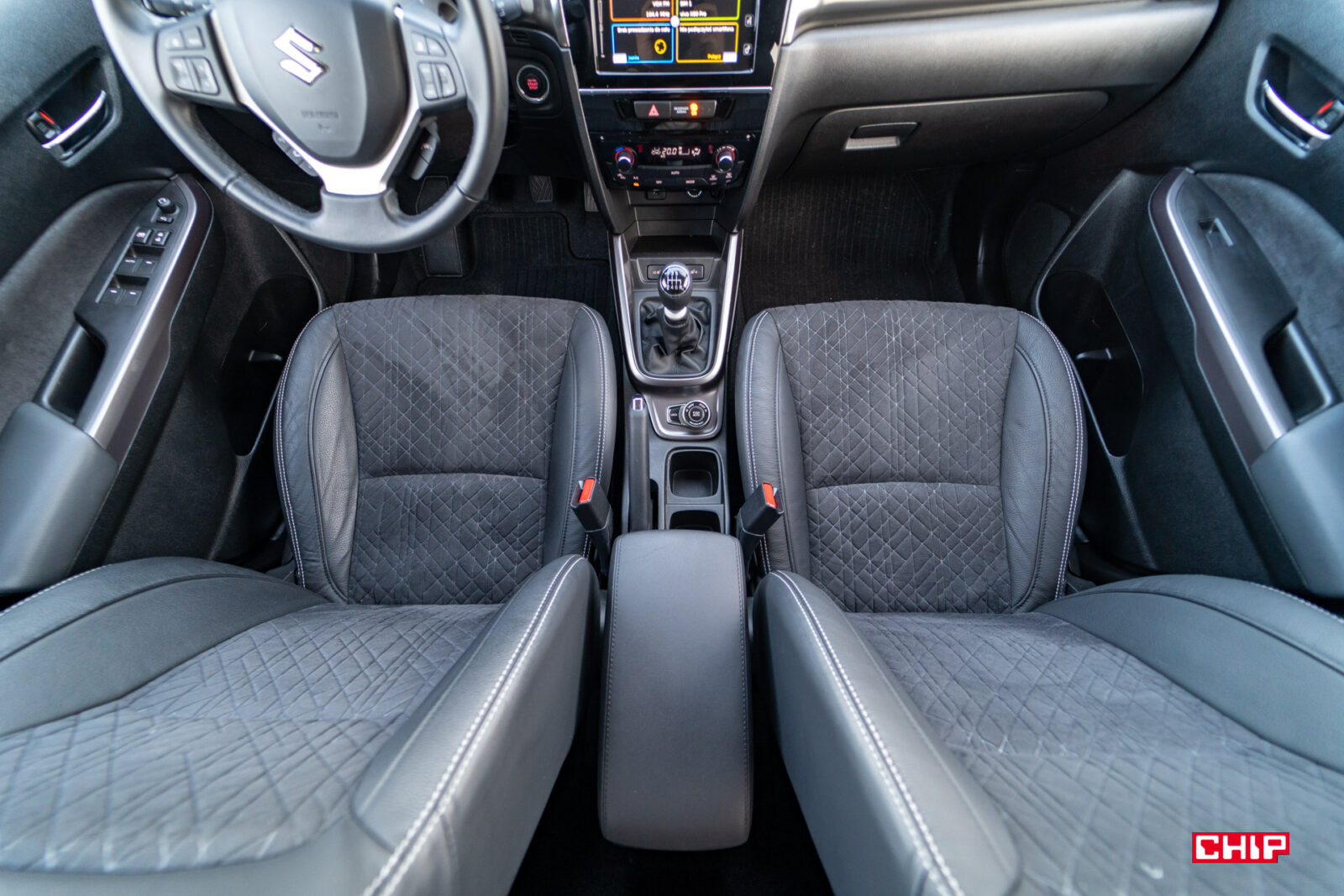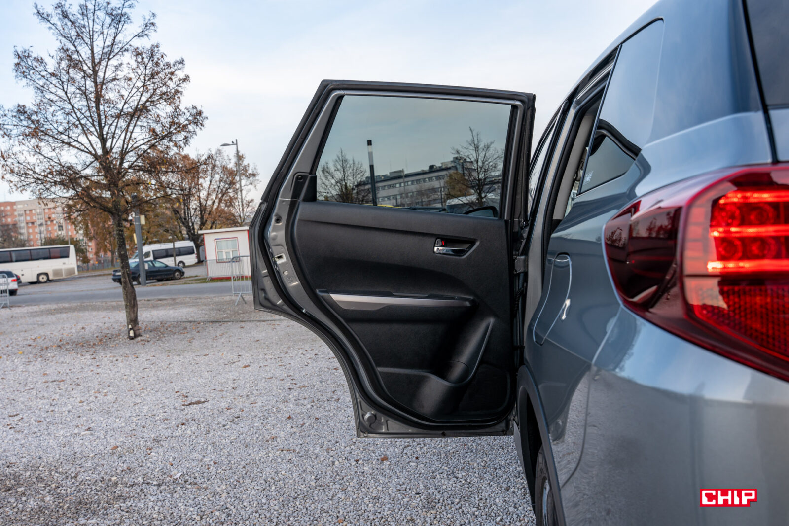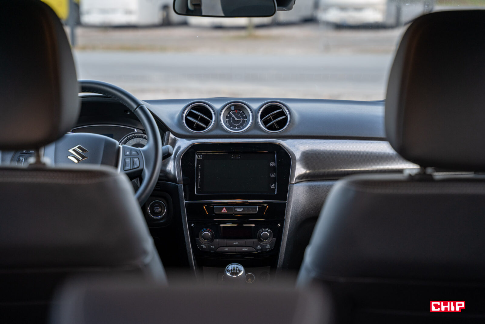 Tym, co rzuciło mi się oczy we wnętrzu Vitary jest dużo przestrzeni, szczególnie z przodu. Choć auto jest dosyć kompaktowe, w środku od razu da się poczuć wrażenie, że tu jest zwyczajnie dużo miejsca. Niekoniecznie czuć to z tyłu, bo jest tam zwyczajnie dosyć ciemno, ale jeśli posadzimy tam dwie osoby, to nawet w bardzo długiej trasie będą się czuć komfortowo i nie będą narzekać na brak wolnego miejsca nad głową i na nogi.