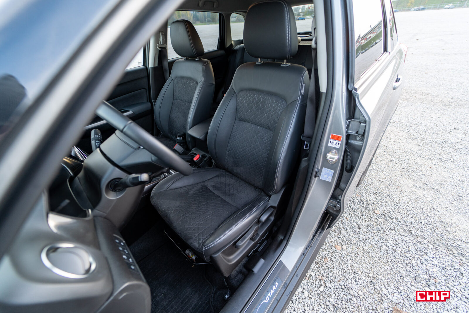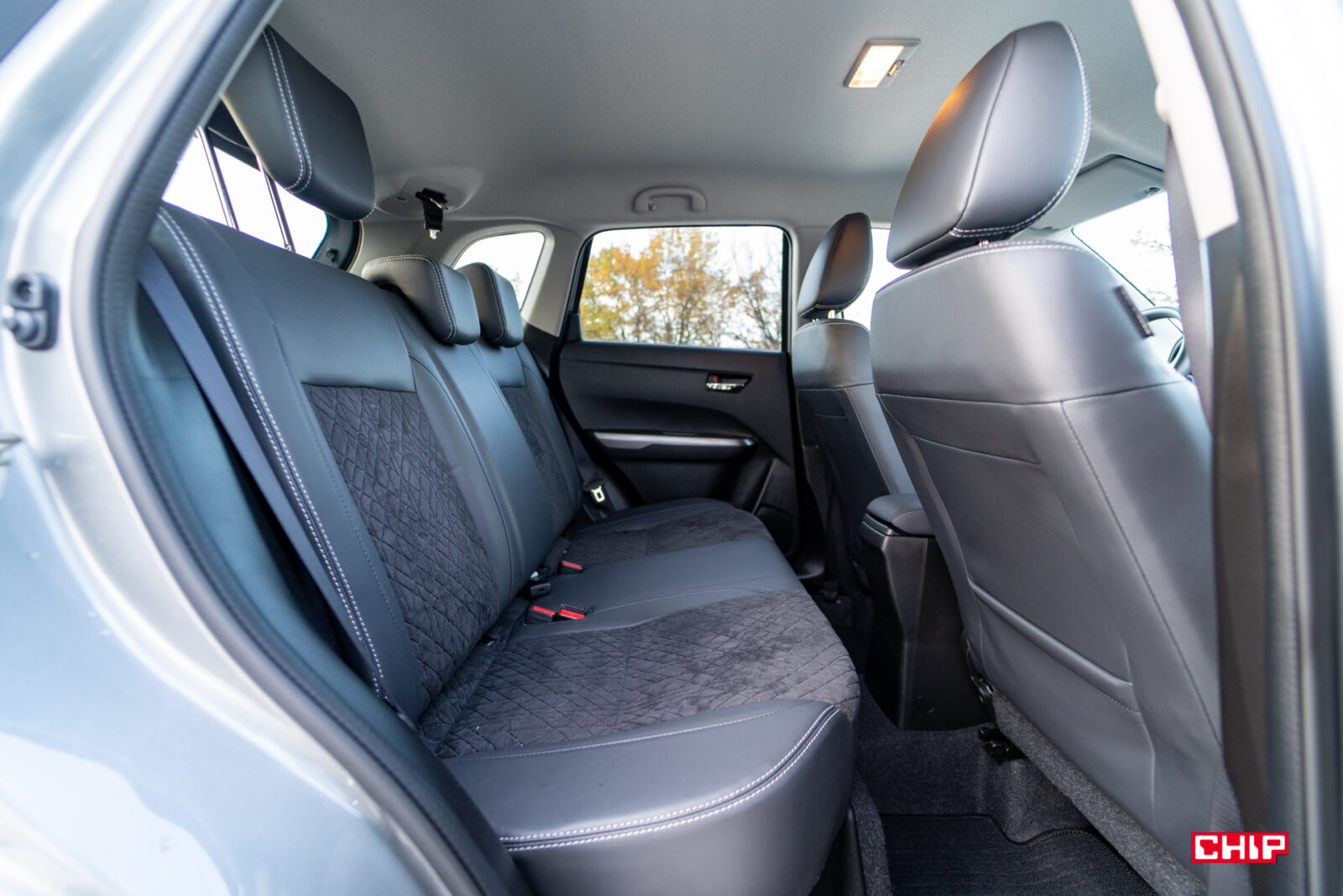Widok materiałowych foteli w tańszych autach wywołuje u mnie traumę po fotelach Dacii Jogger, gdzie nie bardzo było wiadomo, czego się chwytać na zakrętach. W Vitarze, choć optycznie może być podobnie, tego problemu nie ma. Fotele, choć nie są duże, to są bardzo wygodne i spędzonego w nich czasu nie będziecie źle wspominać. Przynajmniej pod kątem komfortu dla pleców.
