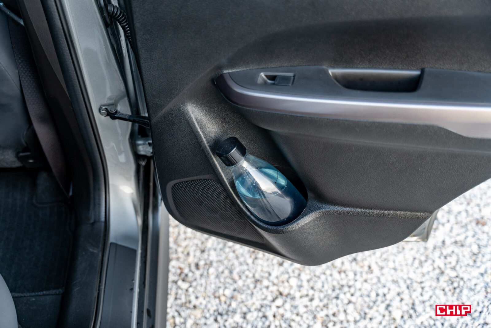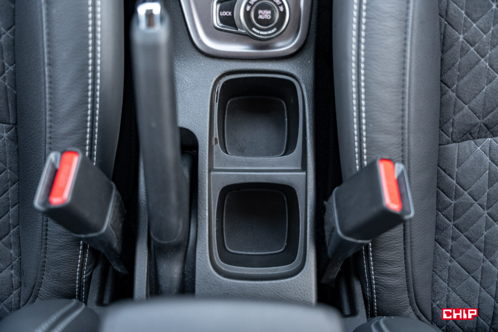 Z rzeczy praktycznych, do dyspozycji mamy nieduży, przesuwany podłokietnik i dwa proste, może nie tyle uchwyty, co zagłębienia na napoje. Testowany wariant wyposażenia miał też podgrzewane, dwustopniowo, przednie fotele.