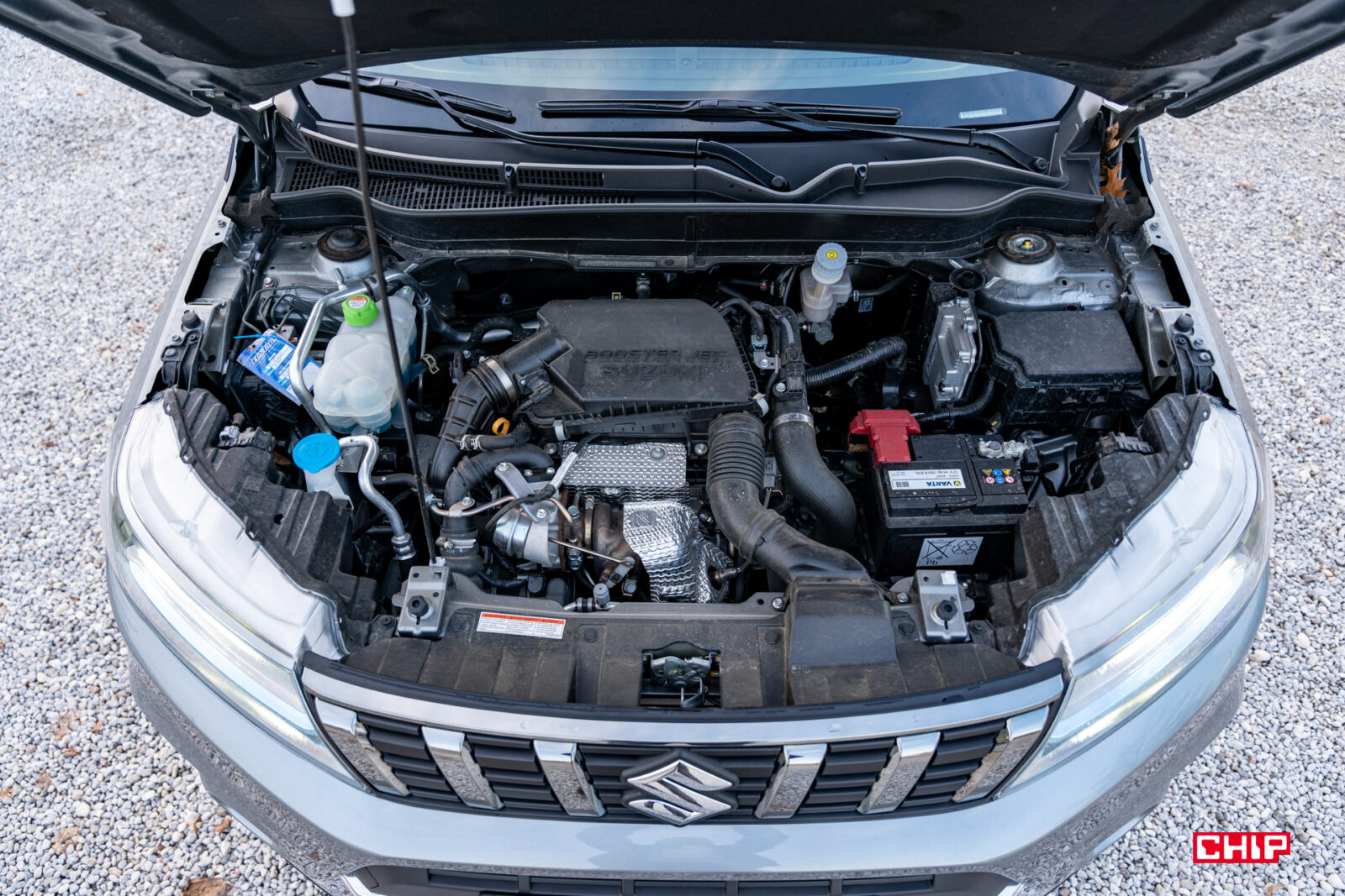 Przejdźmy do danych technicznych. Najmocniejsza Vitara w wariancie mild hybrid została wyposażona w 1.4-litrowy silnik o maksymalnej mocy 95 KM (5 500 obr./min.) i 235 Nm maksymalnego momentu obrotowego (2 000 – 3 000 obr./min.). Do tego mamy silnik elektryczny o mocy 10 KM i 50 Nm momentu obrotowego, ale ponieważ jest to miękka hybryda, silnik ten nigdy nie będzie samodzielny – jego zadaniem jest wspieranie silnika spalinowego przy ruszaniu i przyspieszaniu. Skoro już o przyspieszaniu mowa – Vitara do osiągnięcia 100 km/h potrzebuje 10,2 s. Czy jest to zaskoczenie? Nie. To auto nigdy nie było przeznaczone dla kierowców z zacięciem do dynamicznej jazdy, jest produktem stworzonym dla fanów jazdy statecznej, którym się w życiu nie spieszy. Ludziom, którzy swoje w życiu przepracowali, a teraz mogą cieszyć się swobodą i mnóstwem wolnego czasu.