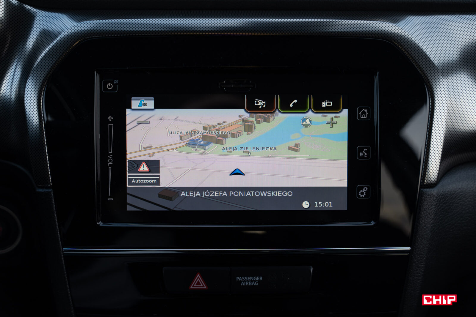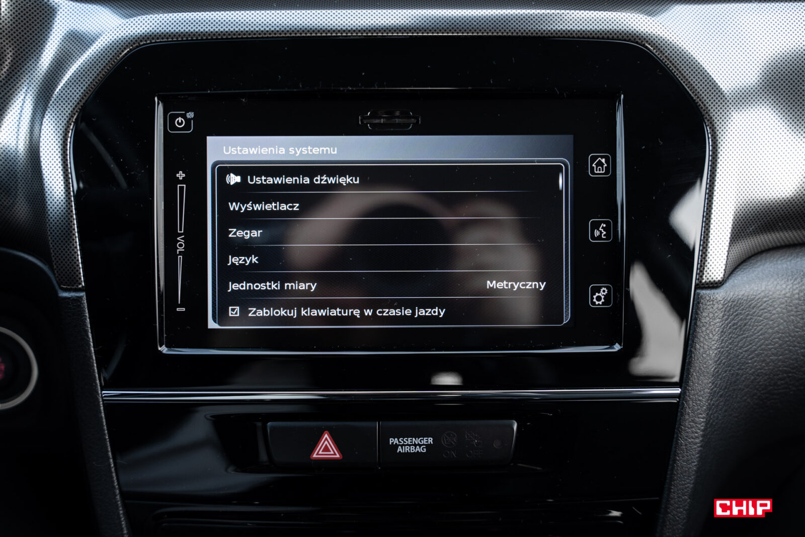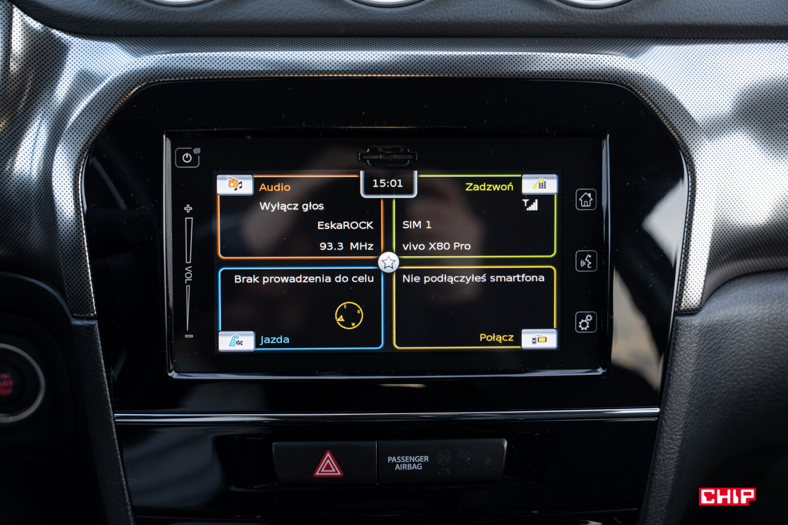 Tak, najtańsze wersje wyposażenia Vitary nie mają w standardzie dotykowego ekranu. Patrząc na zastosowany tu system inforozrywki to może i dobrze, ale wtedy nie skorzystacie z Android Auto lub Apple CarPlay.
