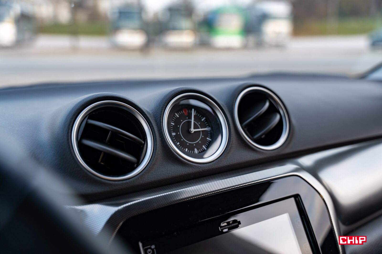 Niektórzy mogą się śmiać z opcjonalnego, umieszczonego na szczycie deski rozdzielczej zegara, ale to element przyciągający wzrok i cieszący oko.