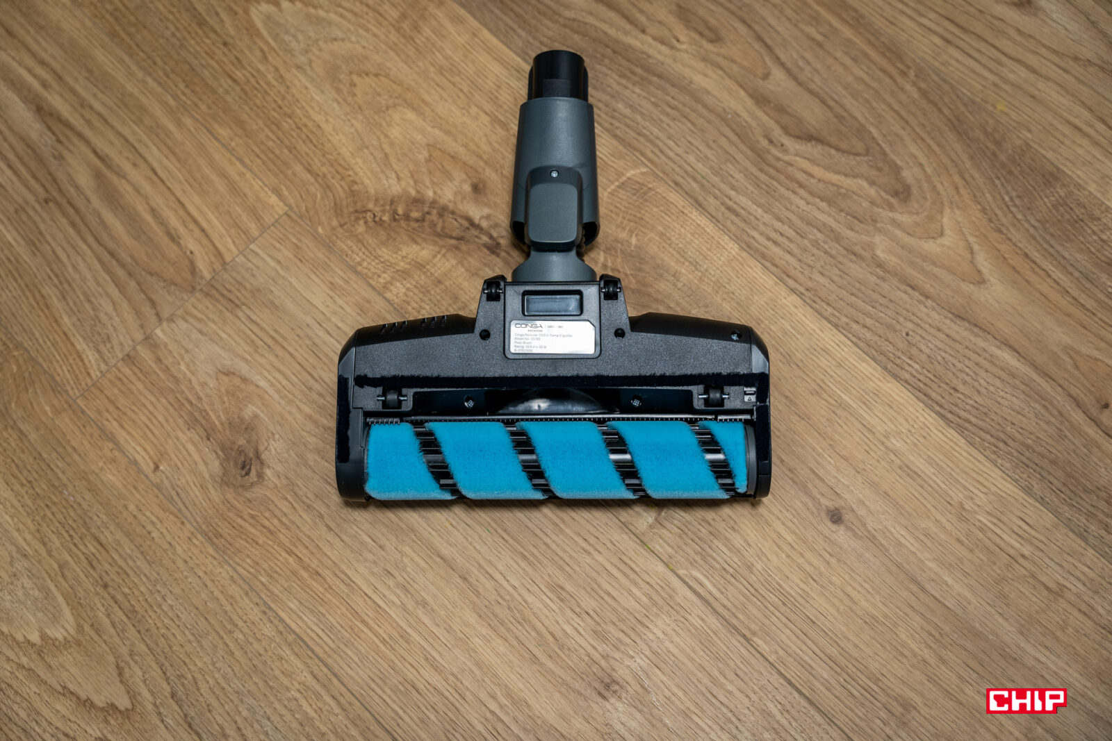 Główna szczotka ma walcowatą konstrukcję i dosyć płaskie włosie i zdecydowanie jestem fanem tego rozwiązania. Takie szczotki lepiej sprawdzają się przy zbieraniu małych, rozsypanych rzeczy, a włosy i sierść nie zaplątują się w nią zbyt łatwo. Wbrew pozorom dobrze radzi sobie też z dywanami. Oczywiście szczotkę można łatwo wyjąć z końcówki i wyczyścić. Ma ona też jeszcze jedną zaletę, ale o tym za moment.