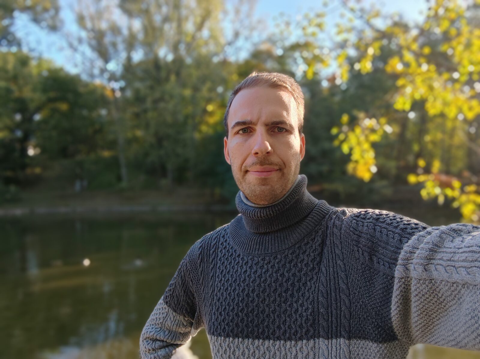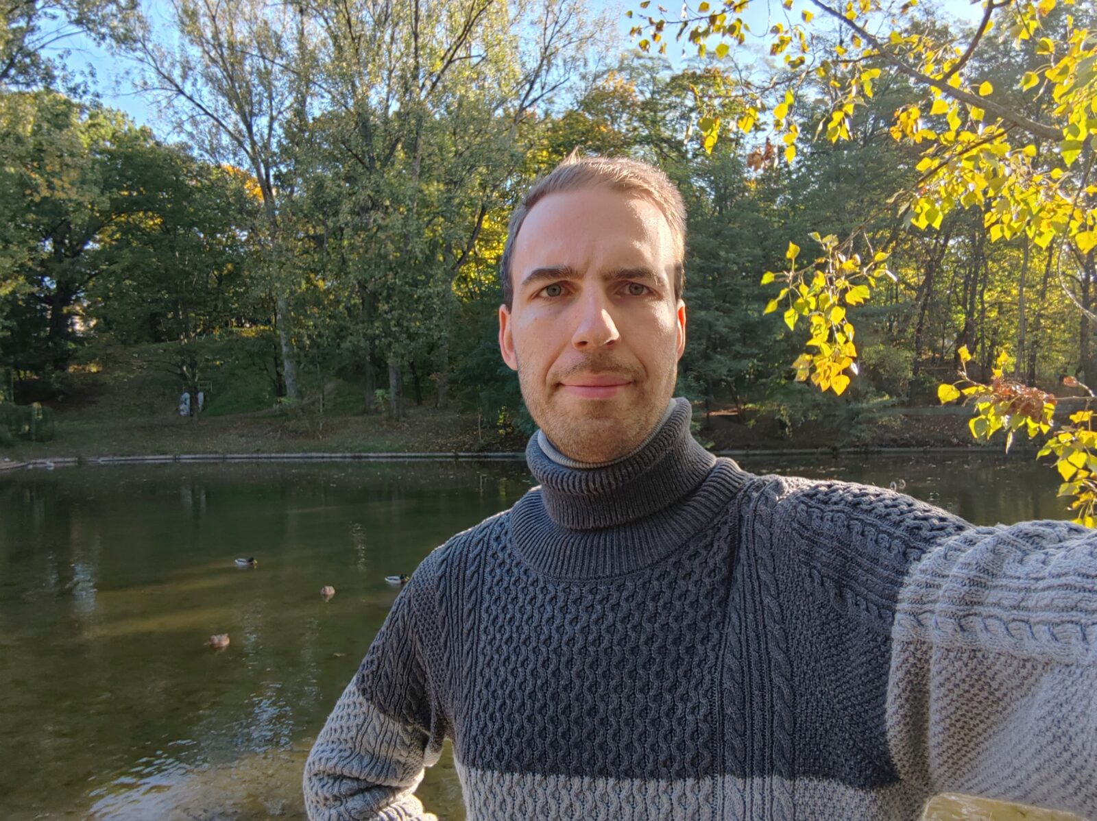 Przedni aparat do „selfie” to aż 50 Mpix matryca z optyką o jasności f/2.4, ale zdjęcia również tutaj robione są standardowo w 12 Mpix. Jakość zdjęć zazwyczaj całkiem niezła, również w przypadku zdjęć portretowych. Na portale społecznościowe wystarczą w zupełności.