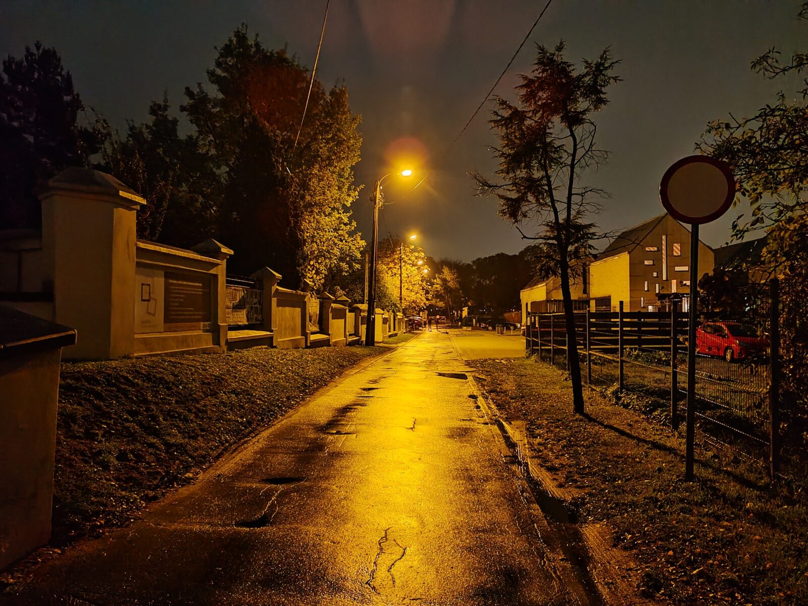 Po zmroku ilość detali oczywiście spada i pojawia się lekki szum, a na zdjęciach widać działanie algorytmów odszumiających. Tragedii jednak nie ma i jak najbardziej można zrobić tym aparatem dobrze wyglądające zdjęcie nocne. Trzeba tylko pamiętać, że nie mamy tu optycznej stabilizacji obrazu, więc musimy bardzo stabilnie trzymać aparat. Niestety, mimo iż tryb nocny jest dostępny w menu, to jego działanie jest bardzo łagodne, a momentami wręcz symboliczne.