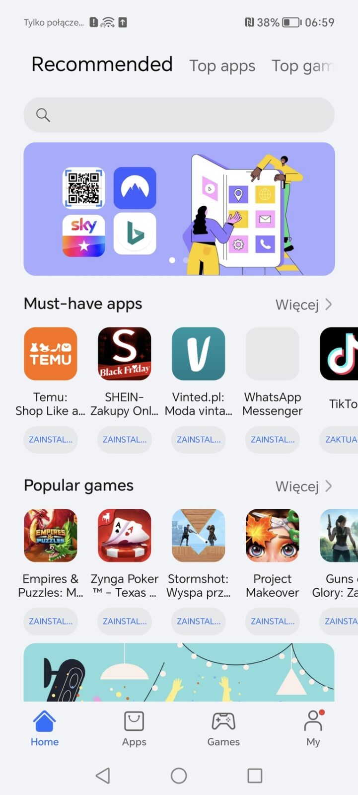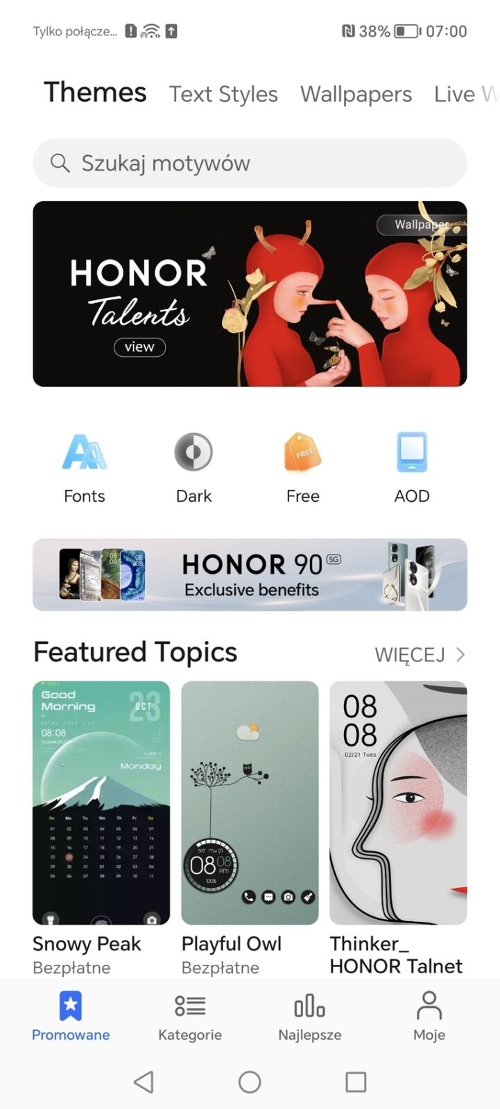 Sama nakładka jest oczywiście przejrzysta i funkcjonalna. Poza wspomnianymi przed chwilą usługami i programami od Google, w systemie znajdziemy również opcję dzielenia aplikacji na ekranie, tryb ciemny dla menu oraz oczywiście możliwość zmiany ikon i motywów. Możemy również wybrać, czy chcemy nawigować po menu za pomocą gestów (co mnie niezmiennie irytuje), czy klasycznie – za pomocą przycisków wyświetlanych u dołu ekranu. Poza sklepem Google Play, gry i aplikacje możemy pobierać również z dedykowanego sklepu producenta – Honor Store.
