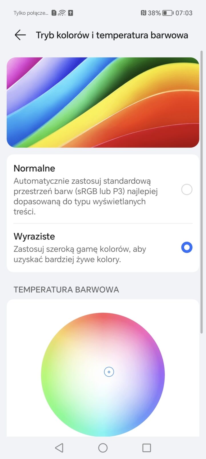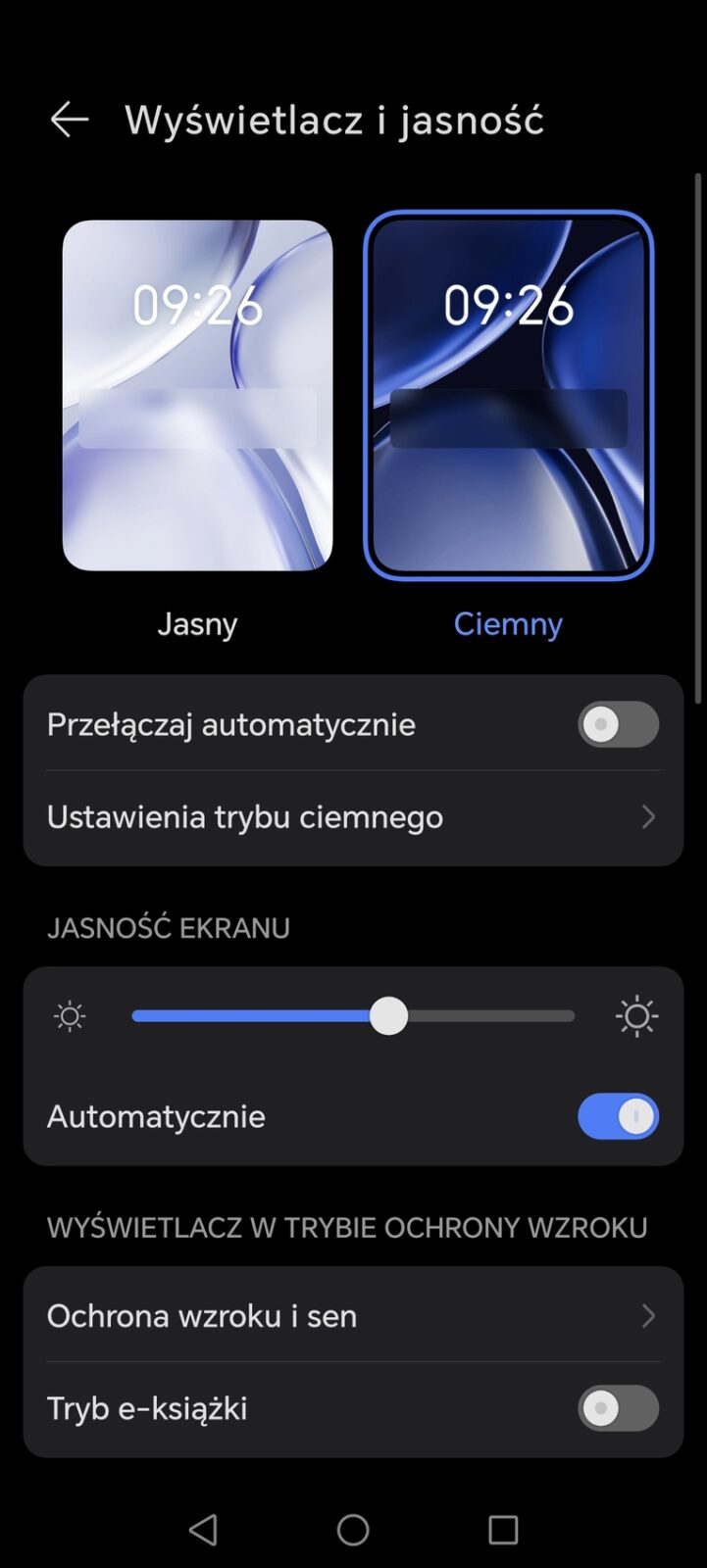 W ustawieniach poza oczywistym trybem ciemnym dla menu, znajdziemy również możliwość regulacji rozdzielczości i częstotliwości odświeżania ekranu. Jest również filtr światła niebieskiego oraz (dość ograniczona) możliwość regulacji temperatury barwowej i nasycenia kolorów.