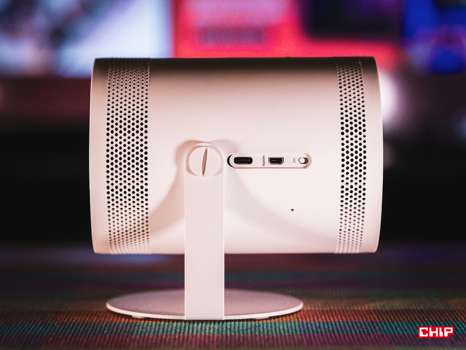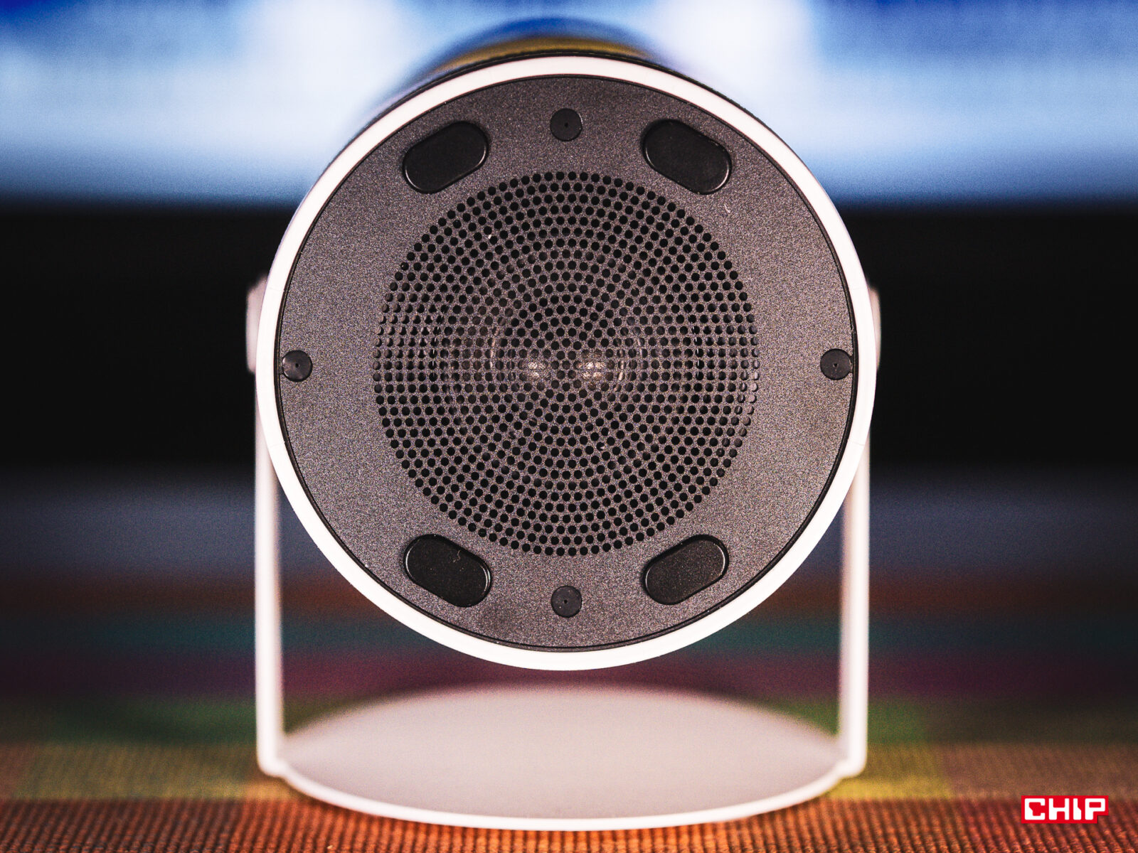 Zdumiewająco dobrze radzi sobie też umieszczony na spodzie projektora głośnik o mocy raptem 5W i nawet przy postawieniu urządzenia nieco dalej, dźwięk dochodzący z niego jest dobrze słyszalny i nie brakuje mu też basowego podbicia. Na upartego The Freestyle Gen. 2 przyjmie źródło sygnału metodą kablową, ale musicie się sami zaopatrzyć w kabel z końcówką micro HDMI. Wbudowany port USB-C służy wyłącznie do zasilania projektora, bezpośrednio z zasilacza lub baterii/powerbanku.