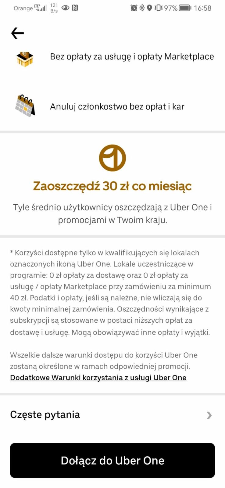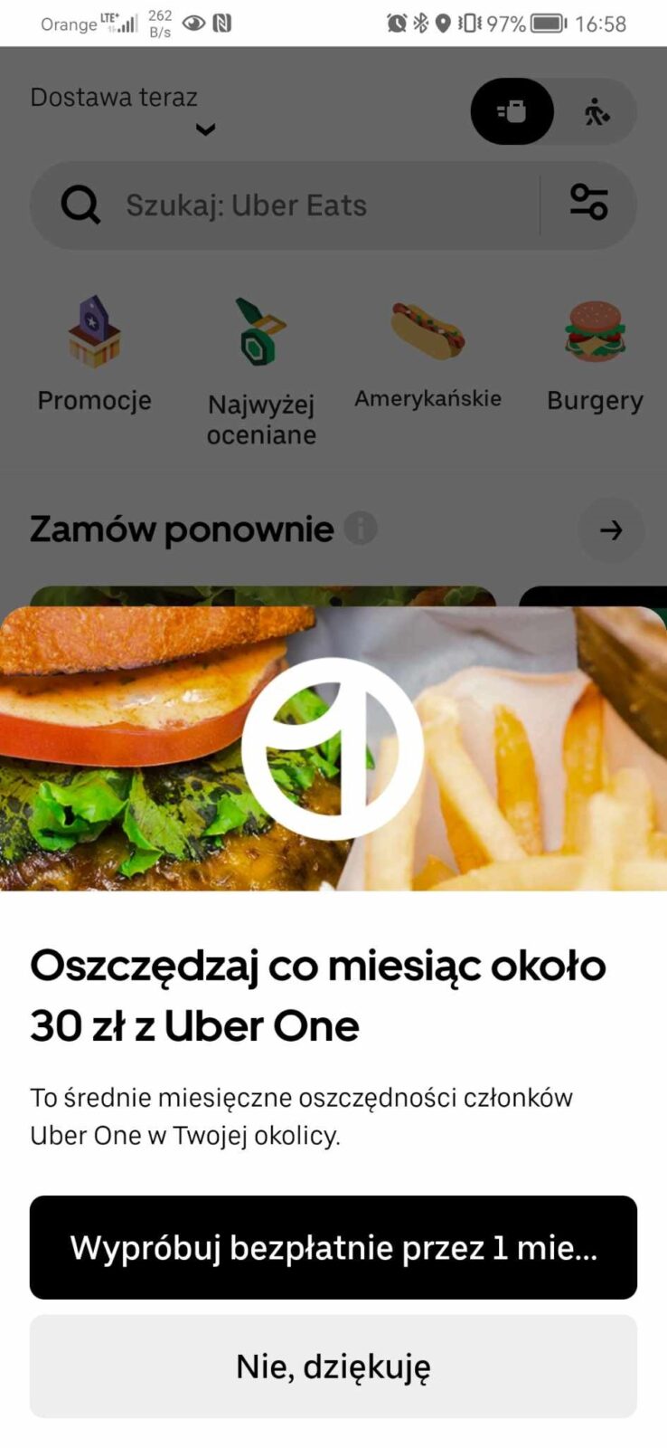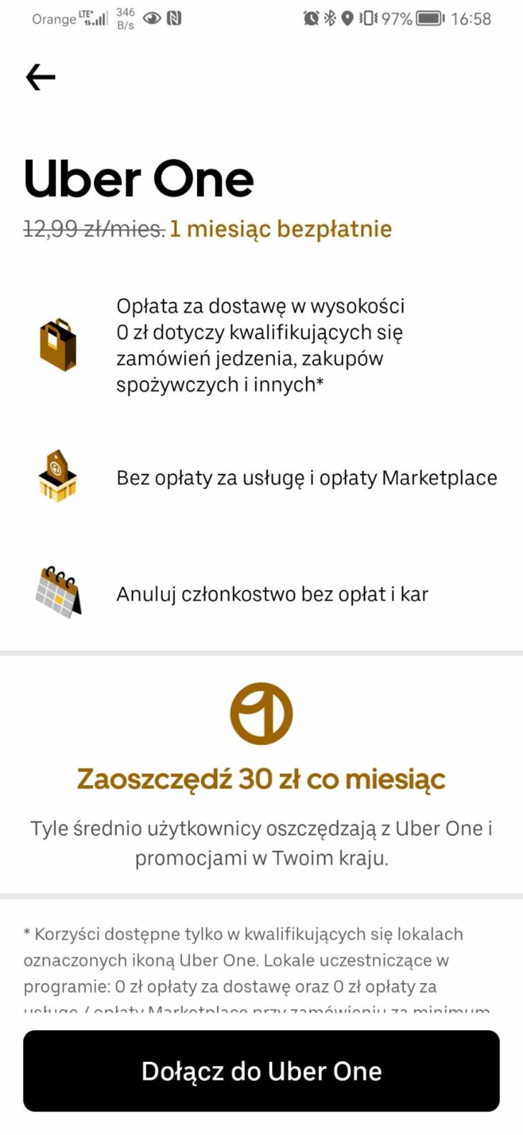 Od razu trzeba uściślić, że Uber One to program lojalnościowy, który dostępny jest już w kilkunastu krajach na całym świecie. Jego zasada jest prosta, opłacasz miesięczny abonament (lub płacisz raz za cały rok) i możesz dzięki temu czerpać różne korzyści. Zapewne każdy, kto choć raz korzystał z Uber Eats wie, że sam koszt dania to nie jedyna opłata, jaką musimy ponieść podczas zamawiania jedzenia. Do tego dochodzą także opłaty za dostawę oraz za samą usługę. Czasem dostępne są różne promocje, które mogą nam obniżyć te koszty, ale ogólnie zawsze doliczane jest przynajmniej dziesięć złotych.