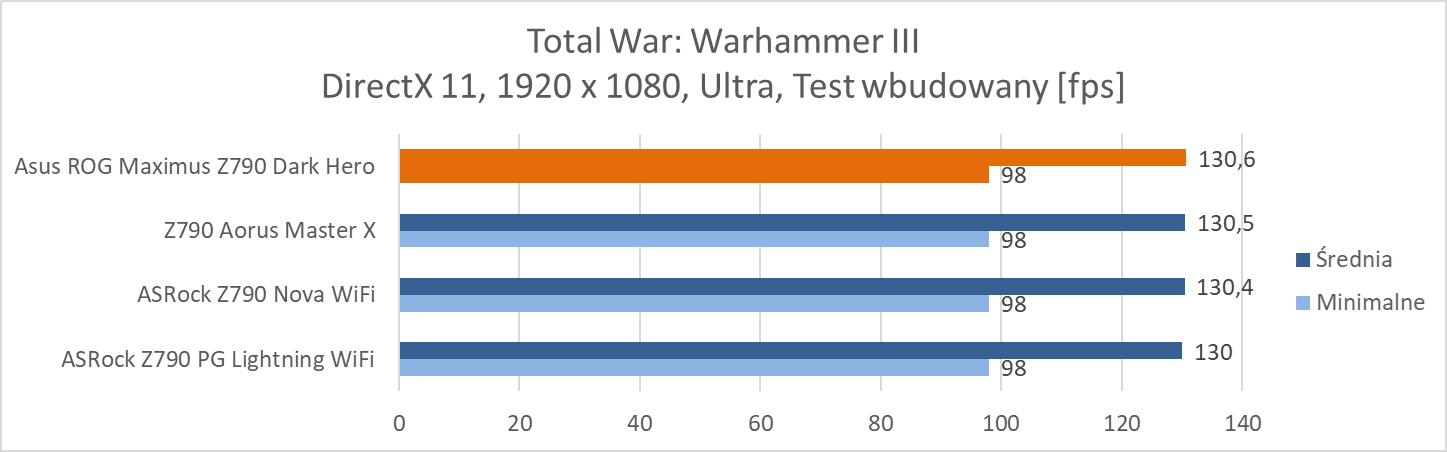 Na koniec przeprowadziłem testy w trzech grach: Total War: Warhammer III, Far Cry 6 oraz Metro Exodus Enhanced Edition. Testy wykonałem w rozdzielczości 1920 x 1080 px przy najwyższych ustawieniach. Wyłączyłem tylko ray tracing oraz DLSS/FSR, jeśli dana gra miała takie opcje. Tutaj oczywiście w Metrze Exodus Enhanced Edition nie da się wyłączyć RT. Testy przeprowadziłem przy wykorzystaniu wbudowanych w gry benchmarków. W przypadku Total War był to benchmark Mirrors of Madness.
