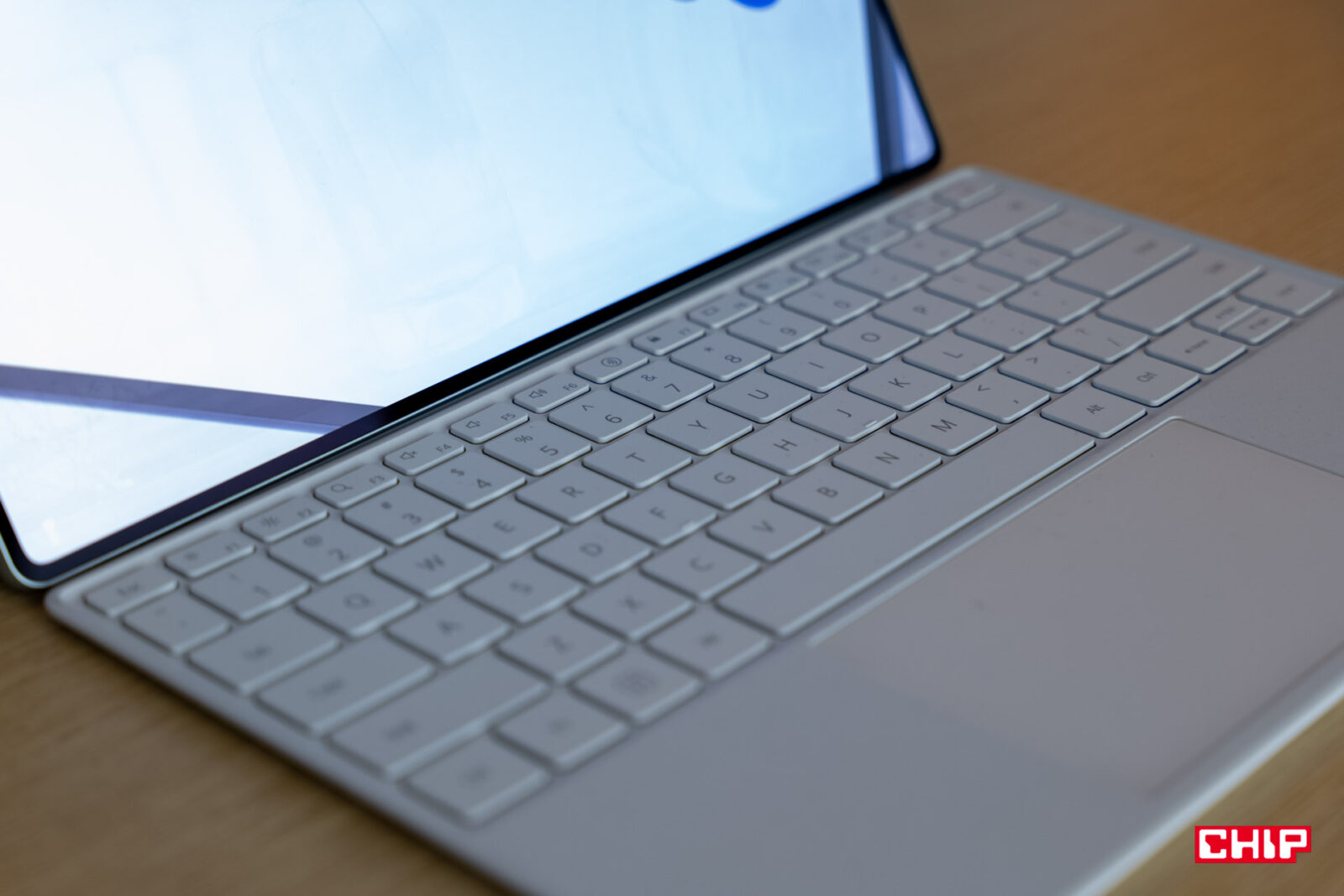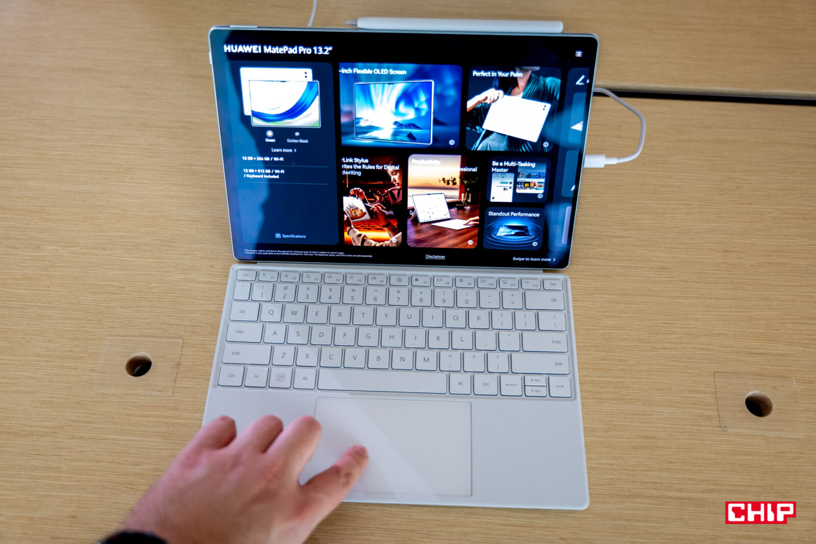 A co z resztą sprzętu? Niezależnie, ile ważyłby MatePad Pro, przy 13,2-calowym ekranie da się odczuć jego wymiary. To urządzenie, które nie będzie zbyt poręczne, nawet jeśli waży tylko 580 gramów. Producent nie zakłada jednak, że cały czas będziemy je nosić w dłoni, a w przypadku najdroższego wariantu planuje, byśmy mieli w zestawie klawiaturę albo etui. Co ciekawe, prezentowana klawiatura może działać w nieco dalszym sąsiedztwie od tabletu, więc możemy przykładowo mieć ją na kolanach, gdy tablet stoi na stoliku. Do tego dostajemy touchpad, czym, jak mniemam, Huawei chce przybliżyć nas do uczucia obcowania z PCtem. Jednak zamiast Windowsa znajdziemy Harmony OS 4 lub, jeśli sprzęt dotrze do Europy, Androida pod nakładką EMUI, ale bez rozwiązań Google.