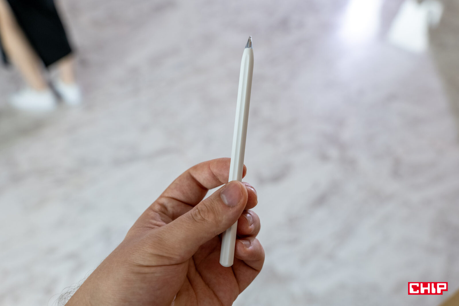 Nie powiedziano o niej za wiele podczas konferencji, a jedynie chwalono się opóźnieniem sześciokrotnie niższym niż w poprzedniej generacji M Pencil oraz wykrywaniem ponad 10000 stopni nacisku. Ze sceny słyszeliśmy o braku poczucia spóźnienia. Podczas pisania w notatniku też byłbym bliski tego stwierdzenia, choć bez dłuższego testu nie mam 100% pewności, że to faktyczny przełom. Tak czy inaczej to przyjemne doświadczenie, a dla artystów duża precyzja może być warta każdych pieniędzy. Z pewnością ergonomia tego rysika nie odbiega znacząco od innych tego typu rozwiązań. Jest on okrągły, nie za lekki i stawia wyczuwalny, ale nieduży opór przy kontakcie z powierzchnią.