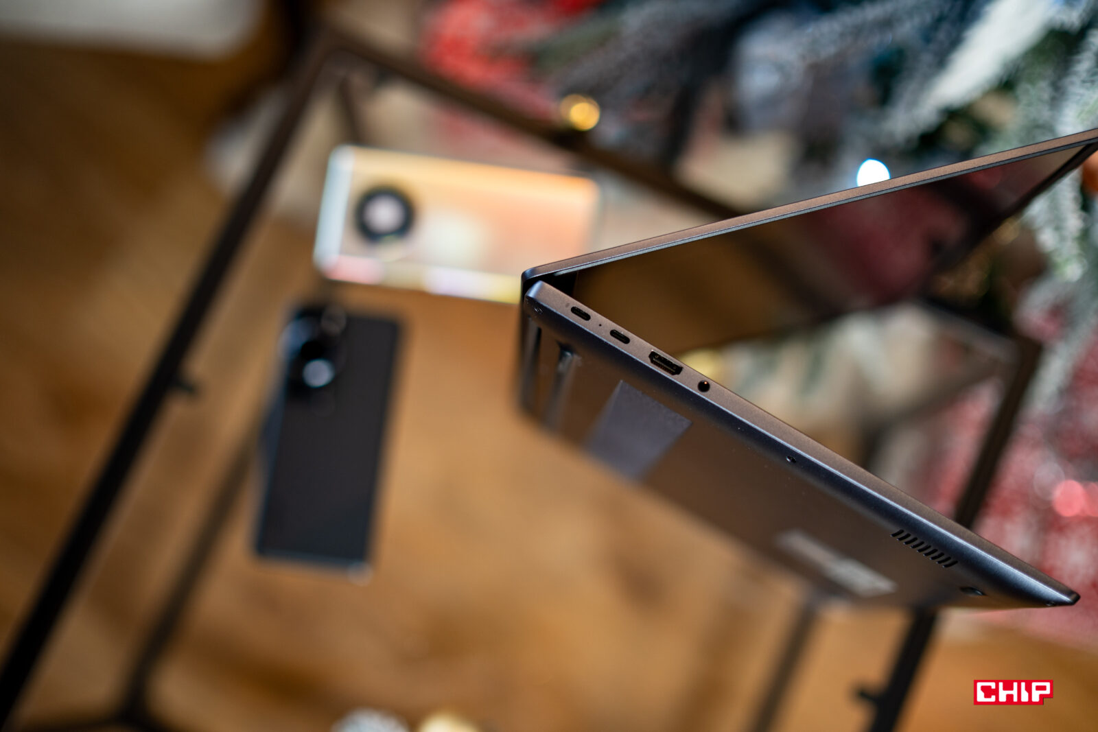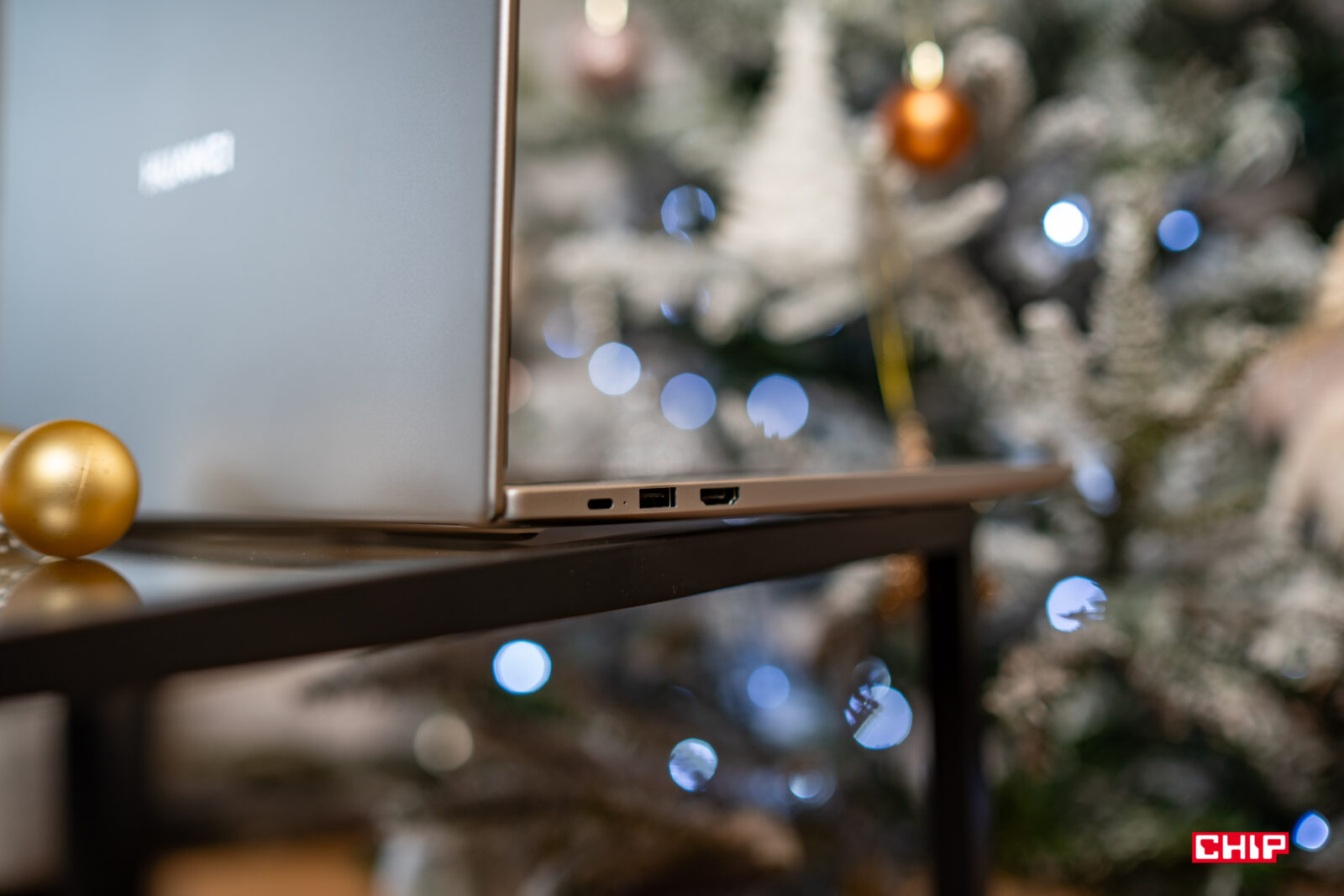 Z drugiej strony mamy bardzo klasyczny zestaw portów. W każdym MateBooku D znajdziemy przynajmniej jeden duży port USB oraz pełnowymiarowe HDMI i gniazdo Jack 3,5mm. Do tego mamy co najmniej jeden port USB-C, który służy do przesyłania plików, w modelach D 14 i D 16 dodatkowo do przesyłania obrazu i za jego pomocą ładujemy akumulator.