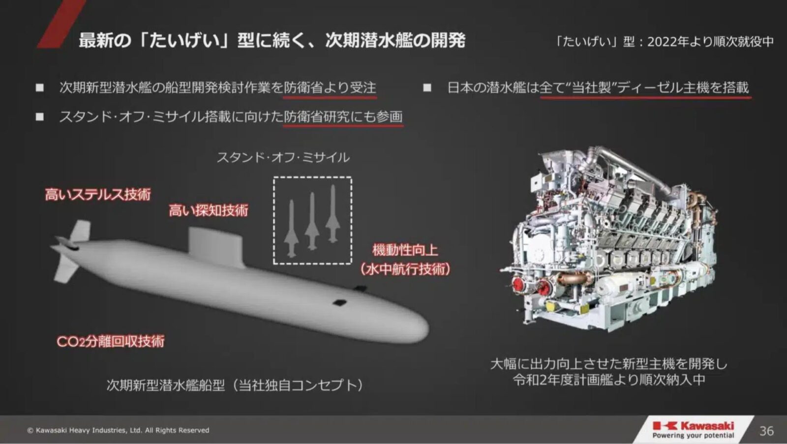 Czołowa firma obronna w Japonii, czyli Kawasaki Heavy Industry zaprezentowała 12 grudnia 2023 roku całemu światu swój przełomowy koncept okrętu podwodnego dla Japońskich Morskich Sił Samoobrony (JMSDF). Wyprodukowane na jego podstawie okręty mają zastąpić obecne okręty typu Taigei, wprowadzając jednocześnie szereg innowacyjnych rozwiązań i tym samym ustanawiając nowy standard w prowadzeniu działań wojennych na morzu.
