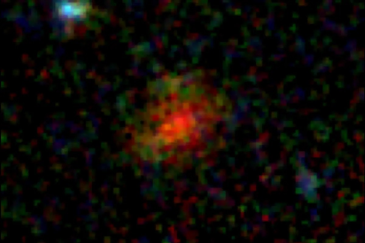 Obiekt uwieczniony przez Kosmiczny Teleskop Jamesa Webba to słabo widoczna galaktyka AzTECC71, w której wciąż rodzą się nowe gwiazdy