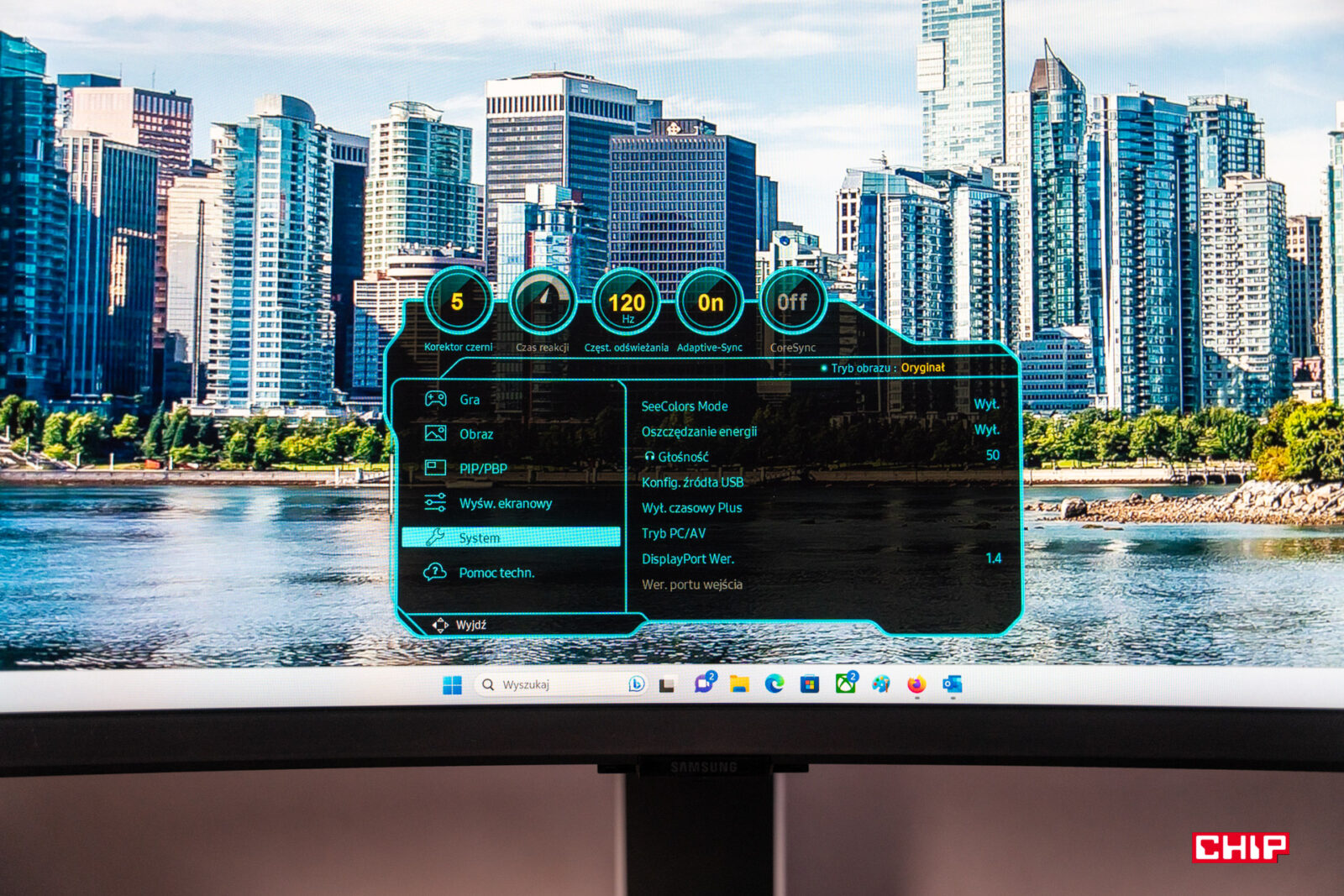 Siłą Odyssey Neo G9 G95NC jest bowiem przede wszystkim 57-calowa przekątna, zakrzywienie rzędu 1000R i rozdzielczość 7680 × 2160, a jest to połączenie, które niejako wyprzedza dzisiejsze czasy. Poza kartami graficznymi Radeon RX 7000, nawet flagowy GeForce RTX 4090 przez brak wsparcia DisplayPort 2.1 nie jest w stanie sprostać wymogom transferowym tego monitora, aby wyświetlić treści w maksymalnej rozdzielczości i przy odświeżaniu 240 Hz, które jest ograniczane do 140 Hz.