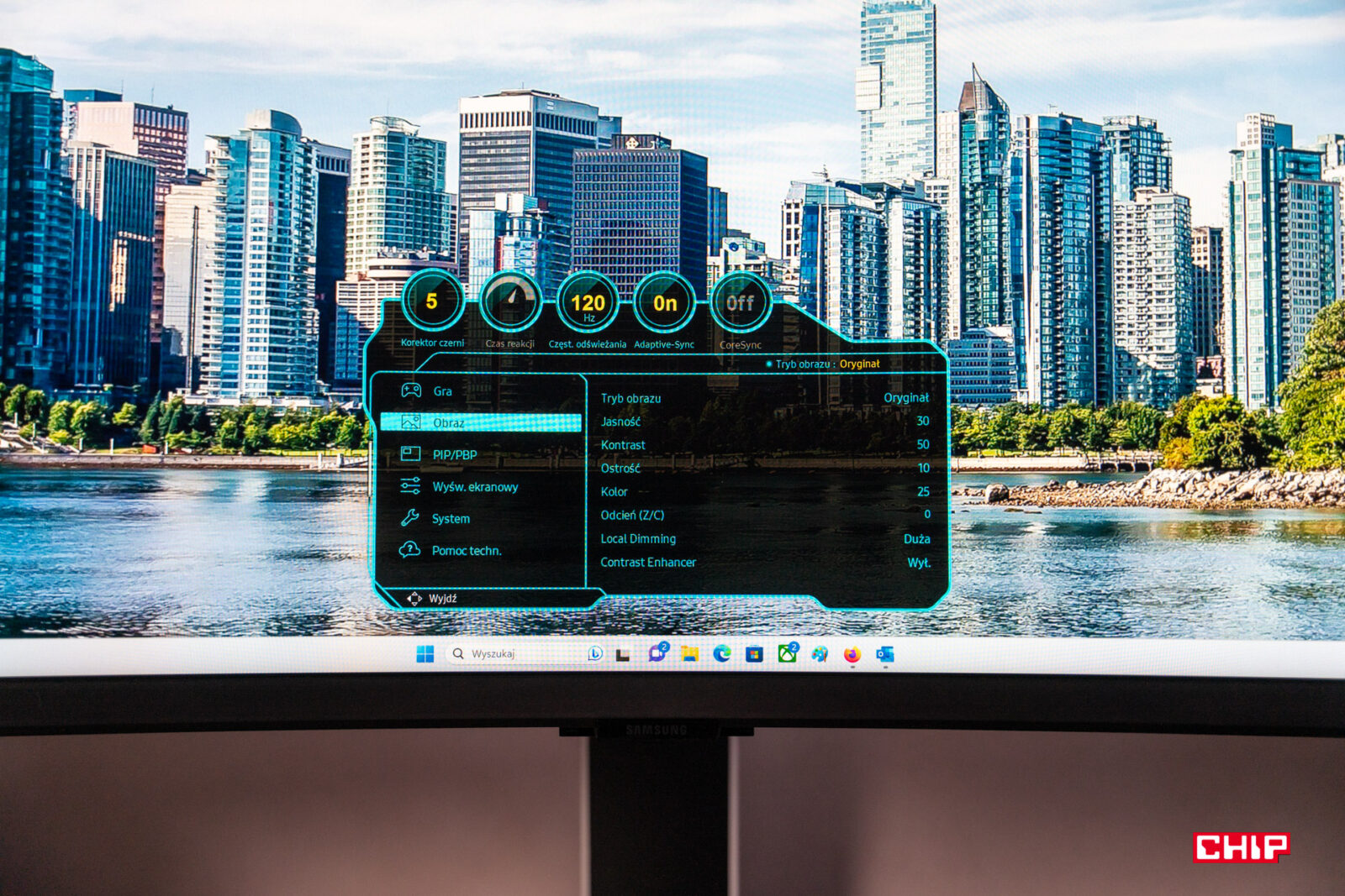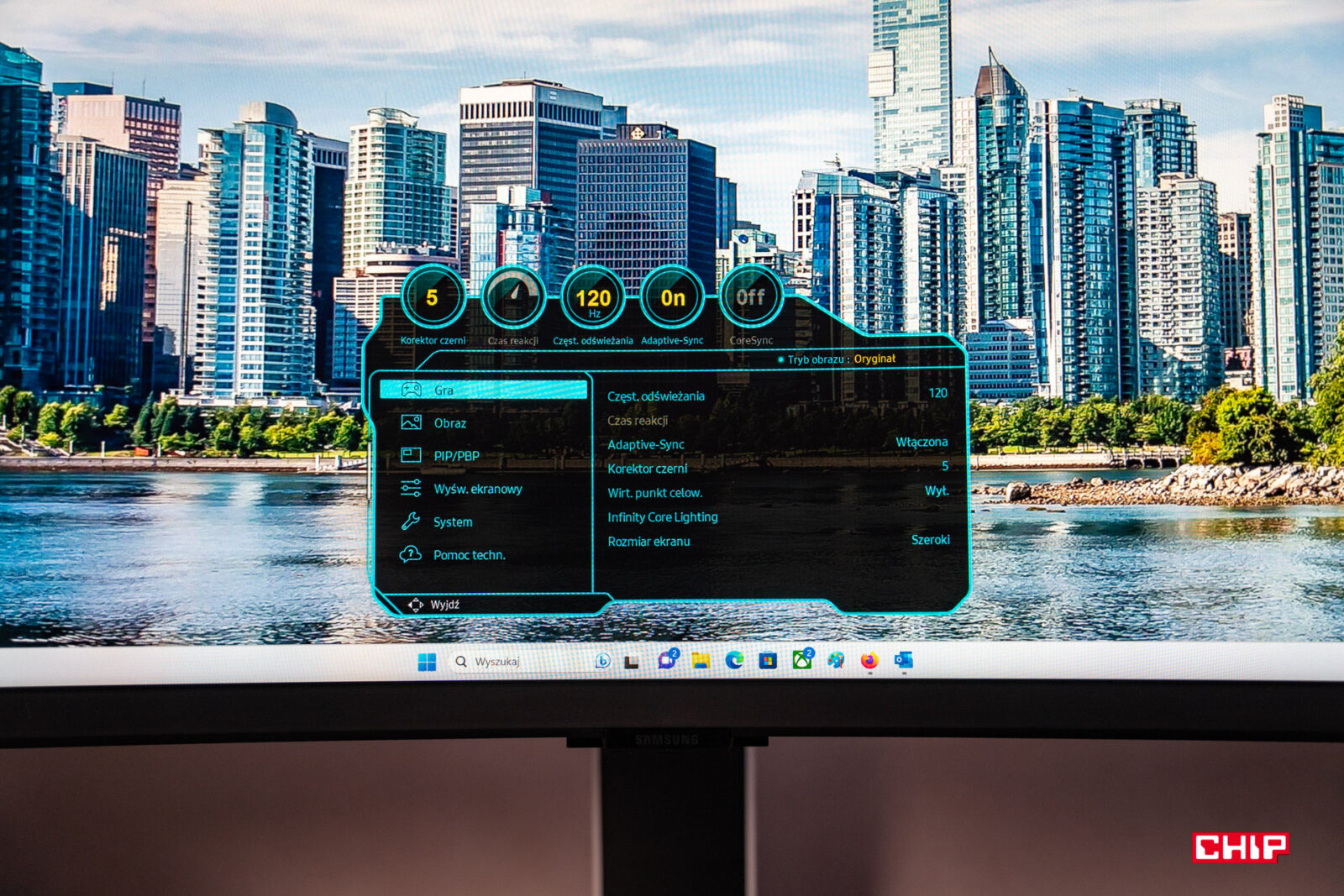 Chociaż 2392 strefy mogą wydawać się wręcz ogromną liczbą, to monitor ten nadal dręczy przyciemnianie jasnych wyświetlanych obiektów w towarzystwie tych ciemnych. Zjawisko to występuje wprawdzie rzadziej, niż w starszych modelach Samsunga tego typu, ale musicie je mieć na uwadze, jeśli akurat zakochaliście się w OLED-ach. Na szczęście nie jest to problematyczne np. wtedy, kiedy gra niewspierająca proporcji 32:9 “zetnie” wam wyświetlany obszar do 21:9 lub nawet 16:9 – wtedy czerń to naprawdę czerń, której nie dręczą żadne poświaty.