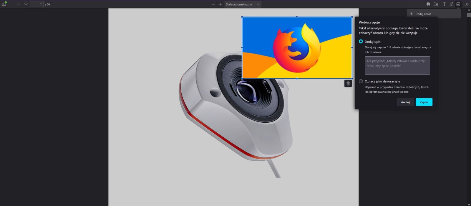 - wbudowany edytor PDF otrzymał funkcję dodawania i usuwania grafik z dokumentu. Podczas dodawania obrazu można go podpisać;