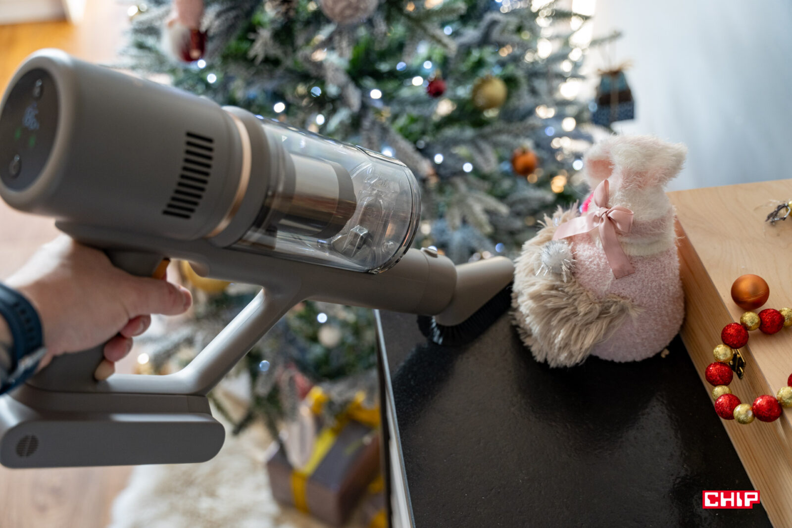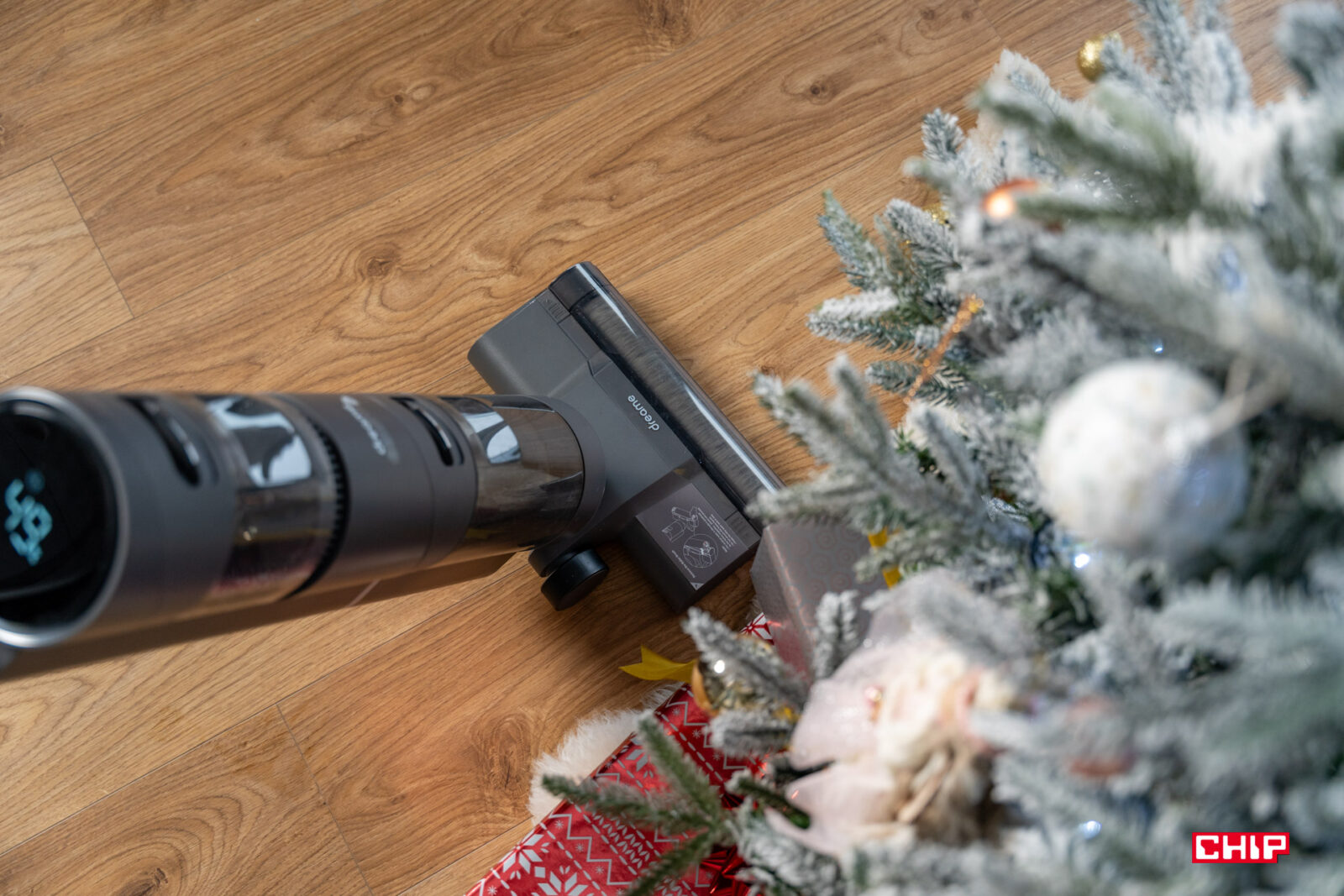 W zestawie nie brakuje przydatnych końcówek, które pozwalają na sprzątanie nie tylko podłóg, ale również trudno dostępnych miejsc za meblami, na półkach czy w samochodzie. Nie mogę też nie wspomnieć o świetnej funkcji, jaką jest automatyczne czyszczenie i suszenie szczotek. Po skończonym sprzątaniu nie musimy więc sami tego robić, bo wystarczy odłożyć odkurzacz na stację ładowania i nacisnąć odpowiedni przycisk, a on sam wypłucze wałek szczotki, a następnie wysuszy go gorącym powietrzem, co zapobiega powstawaniu pleśni i nieprzyjemnych zapachów, jednocześnie zdejmując z nas konieczność wykonywania tej nurzącej czynności samemu.