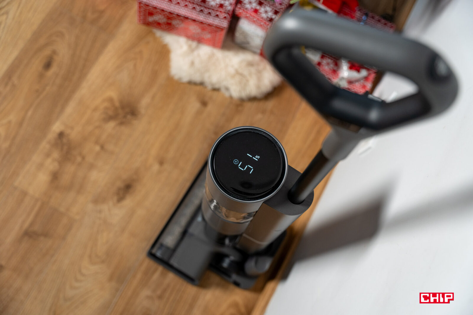 W dodatku H12 Dual inteligentnie wykryje stopień zabrudzenia powierzchni i w zależności od tego, z czym musi się zmierzyć, wyreguluje swoją siłę ssania. To oszczędza nam długotrwałego męczenia się z odkurzaniem czy myciem, pozwalając na szybsze i jednocześnie skuteczniejsze sprzątanie. Oczywiście możemy też sami dostosować pracę odkurzacza do swoich potrzeb, wybierając spośród kilku trybów, takich jak Auto do codziennego sprzątania, Suction do usuwania plam, Standard podczas korzystania z odkurzacza ręcznego albo Turbo do zadań specjalnych. Pamiętać jedynie trzeba, że w zależności od wybranego trybu czas pracy będzie się różnił. Optymalnie akumulator 4000 mAh pozwala na około 60 minut odkurzania lub 35 minut mopowania. Na pokładzie nie zabrakło również praktycznego wyświetlacza LED, który pomoże sprawdzić stan baterii, wybrany tryb pracy i inne informacje.
