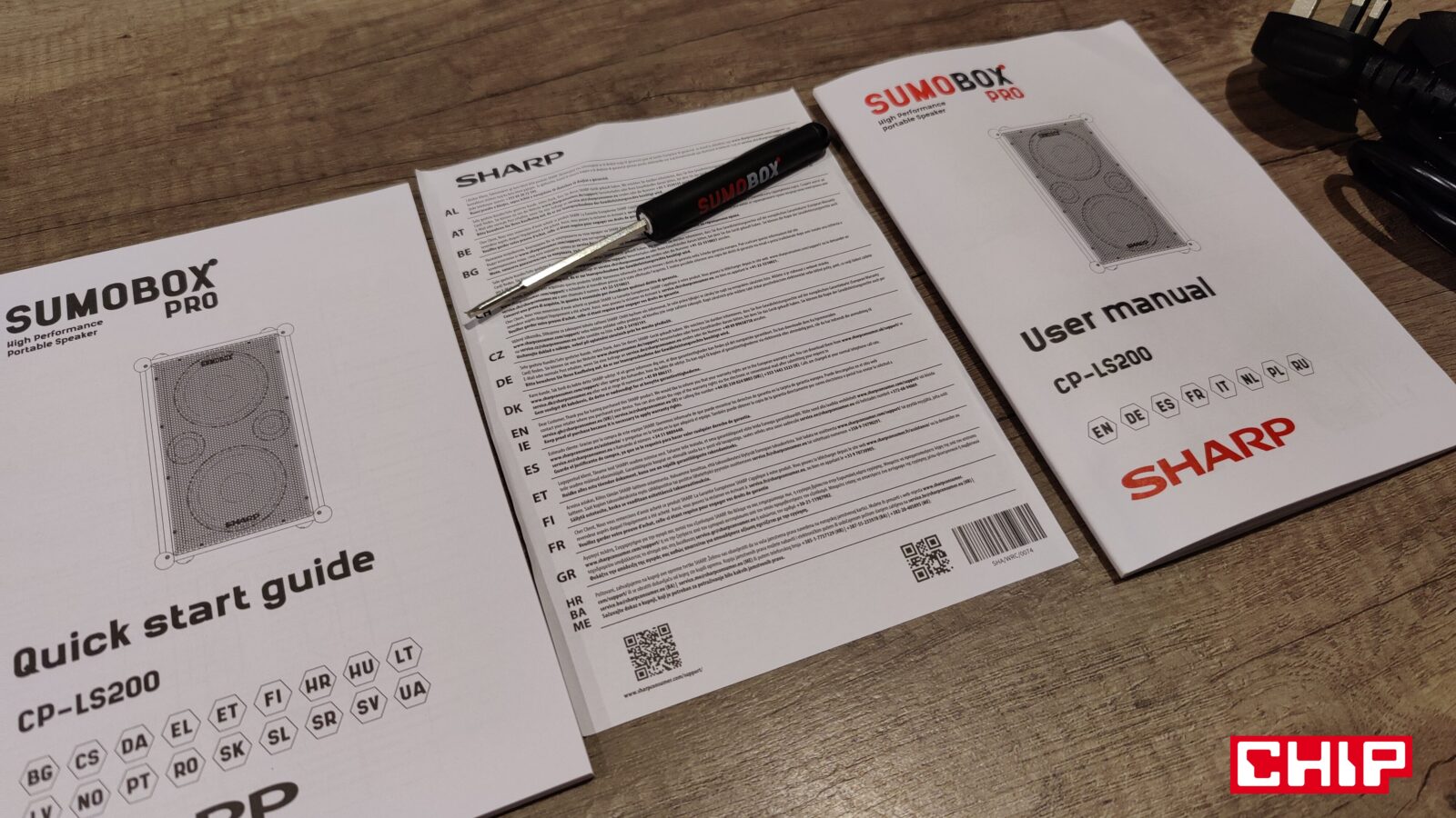 Jeśli zresztą już przy wyposażeniu jesteśmy, w wielkim ekologicznym pudle, w którym dociera do nas SumoBox Pro CP-LS200 znajdziemy nie tylko wspomniany przewód i akumulator, ale też silikonowe zabezpieczenia narożników, dwustronny śrubokręt sześciokątny oraz dokumentację (również w języku polskim). Proces montażu zabezpieczeń jest prosty, ale nieco czasochłonny, jako że musicie wykręcić i następnie ponownie wkręcić aż 16 śrubek. W ogólnym rozrachunku warto to zrobić, aby zabezpieczyć narożniki tej wielkiej bestii-głośnika przy częstym transporcie, ale nie jest to wymagane.