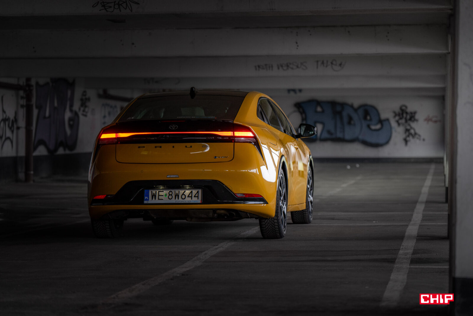 Nowy Prius nie przypomina swoich poprzednich generacji, ale to nie znaczy, że się od nich odżegnuje. Wręcz przeciwnie – swoją nazwę nosi jak odznakę honoru przyczepioną do tyłka. Mamy tutaj jeszcze pas świetlny przechodzący przez tył, który z kolei jest dosyć mocno zadarty.