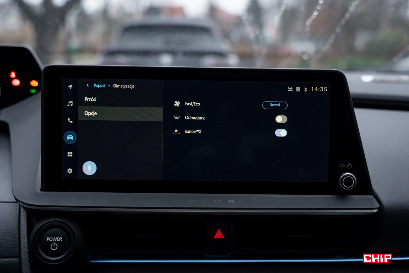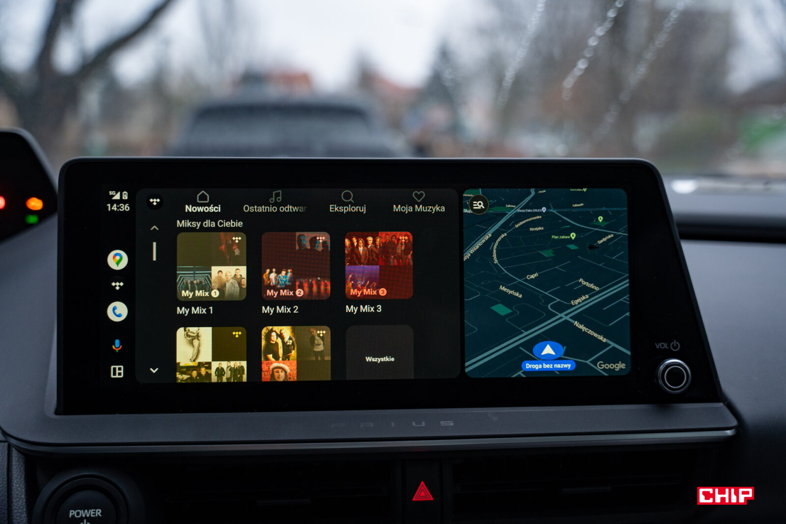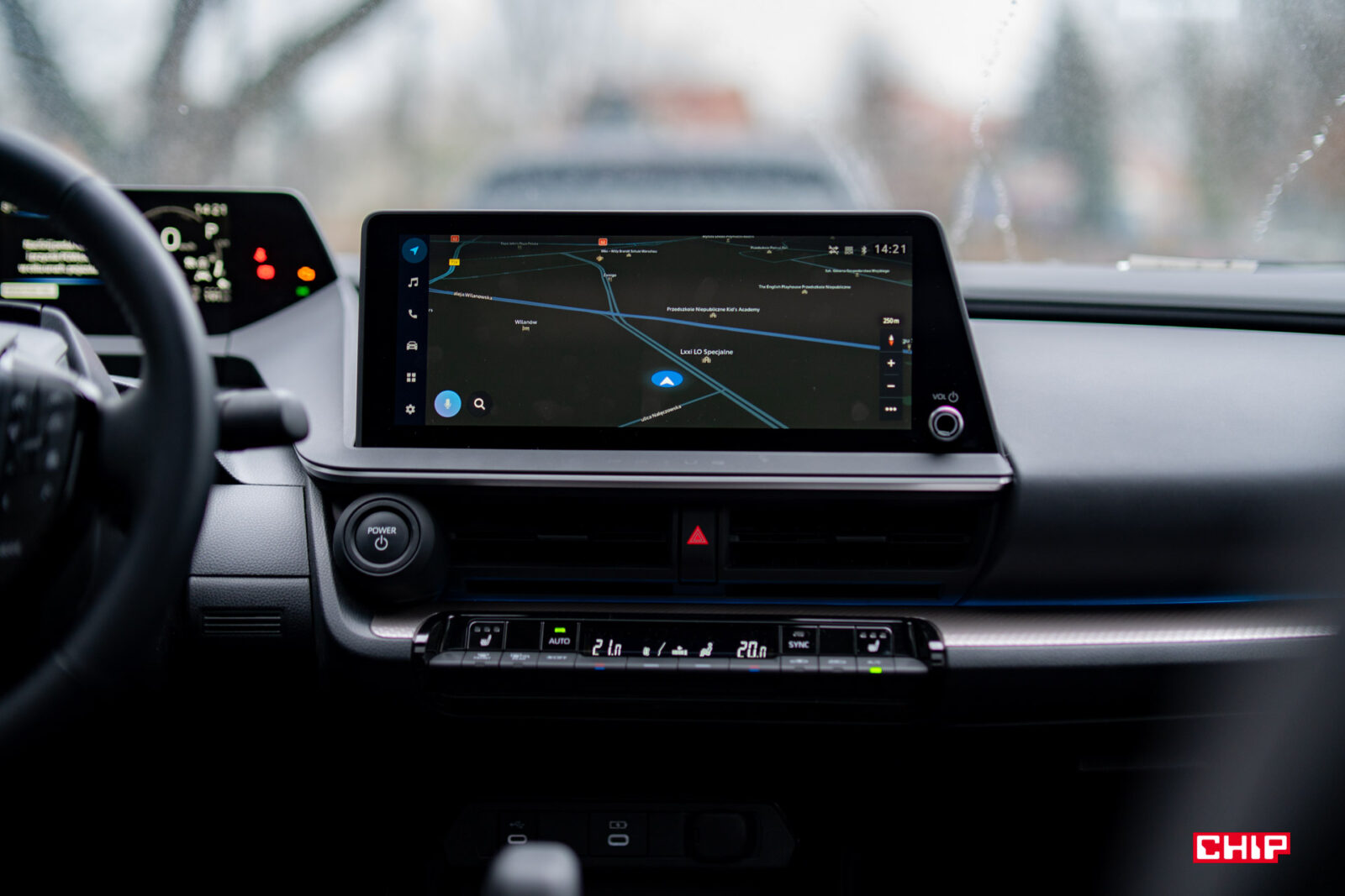 Krokiem wstecz jest Android Auto, który działa przewodowo. Nawet w takim Aygo X kabelek nie jest potrzebny. Bezprzewodowy jest tylko Apple CarPlay. Interfejs smartfonu jest wyświetlany na dużym i ładnym ekranie głównym o przekątnej 12,3 cala. Służy on w zasadzie głównie do tego – nawigacji i multimediów. Znajdziemy na nim tylko kilka ustawień dotyczących wnętrza i dźwięku, cała reszta jest na ekranie kierowcy. Użytkownicy Toyoty szybko zauważą, że jest to niemal ten sam interfejs co w poprzedniej generacji Corolli czy RAV4, ale w końcu przestał straszyć grafią.