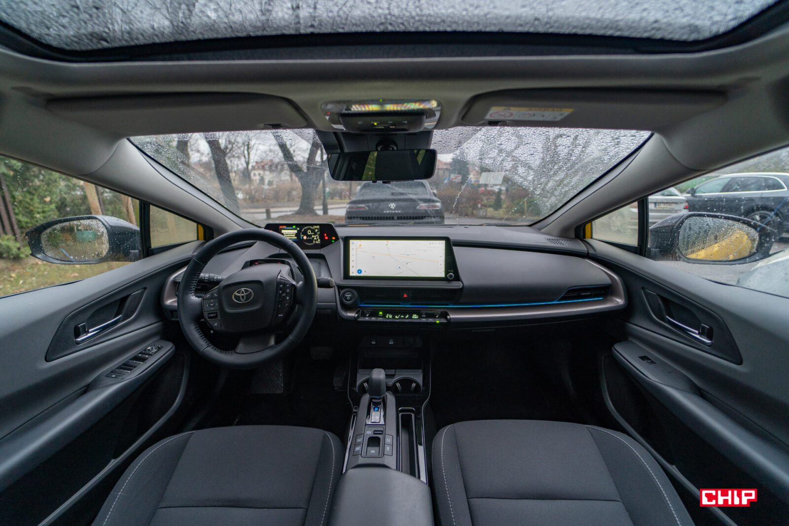 Co do prowadzenia – to zależy. Jeżeli lubicie SUV-y, a Corolla Cross jest przedmiotem Waszych fantazji, nie będziecie czuć się dobrze w Priusie. Będzie Wam za nisko, zbyt klaustrofobicznie. Jeżeli wręcz przeciwnie, lubicie siedzieć blisko asfaltu i nie rozumiecie skąd w naszym pięknym kraju wzięło się takie umiłowanie do SUV-ów, którego nie uzasadnia ani ukształtowanie terenu, ani zdrowy rozsądek, będziecie się czuć w Priusie świetnie. To auto wygląda tak aerodynamicznie nie bez kozery. Testowaliśmy go na autostradzie przy silnym wietrze i deszczu i jechał jak po sznurku. Ani podmuchy wiatru, ani mokra nawierzchnia nie były w stanie wybić go z wyznaczonego toru. Było to dosyć zabawne, biorąc pod uwagę innych uczestników drogi dzielnie walczących z cielskami ich bezpiecznych, rodzinnych SUV-ów, które bujało niemiłosiernie na wszystkie strony.