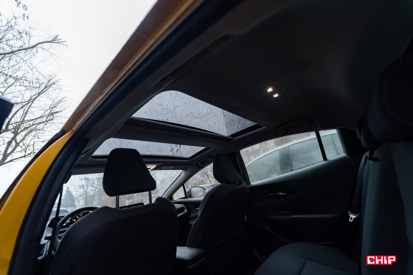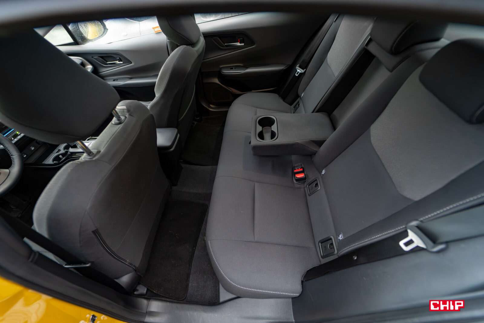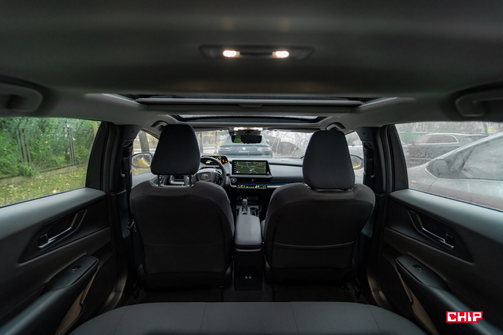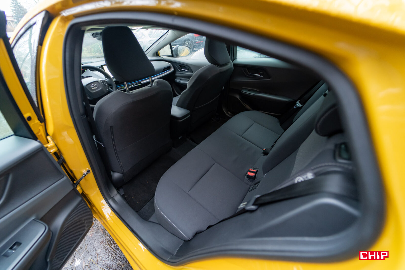 Z tyłu niestety lepiej nie jest, a właściwie jest znacznie gorzej. O jeździe na środkowym miejscu nawet nie ma co mówić, a na bocznych wysokie osoby nawet nie mają co myśleć o jeździe w wyprostowanej pozycji z tyłkiem odsuniętym maksymalnie do tyłu. Trzeba się tu lekko rozłożyć. Z tyłu, podobnie jak w poprzednich generacjach, nie ma nawiewów klimatyzacji. Do dyspozycji są tylko porty USB na tunelu środkowym. We wnętrzu nowego Priusa mamy zatrzęsienie portów USB-C. Dwa z przodu, dwa z tyłu i dwa w przednim podłokietniku. Jeśli chcecie coś podładować, nie będzie najmniejszych problemów.