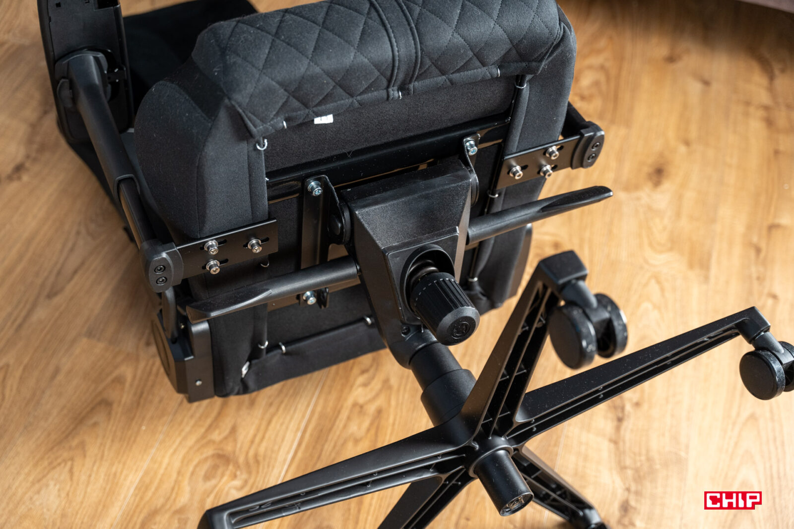 Dlaczego tak szybko? To zasługa dwóch rzeczy. Nie trzeba kombinować z dopasowaniem śrubek, bo wszystkie są wstępnie, delikatnie wkręcone. Wystarczy je wyjąć i przykręcić na nowo po dopasowaniu elementów i to skraca czas potrzebny na złożenie. Ikea ma od kogo się uczyć. Największą zaletą jest jeden mały element przy łączeniu siedziska i oparcia. To taka mała szyna, która lekko otrzymuje te elementy razem i dzięki temu najbardziej czasochłonny etap mamy z głowy. Normalnie trzeba się nakombinować z utrzymaniem odpowiedniego kąta, przytrzymywać opadające oparcie ramieniem, a najlepiej wziąć kogoś do pomocy… Tutaj nie stanowi to najmniejszego problemu.